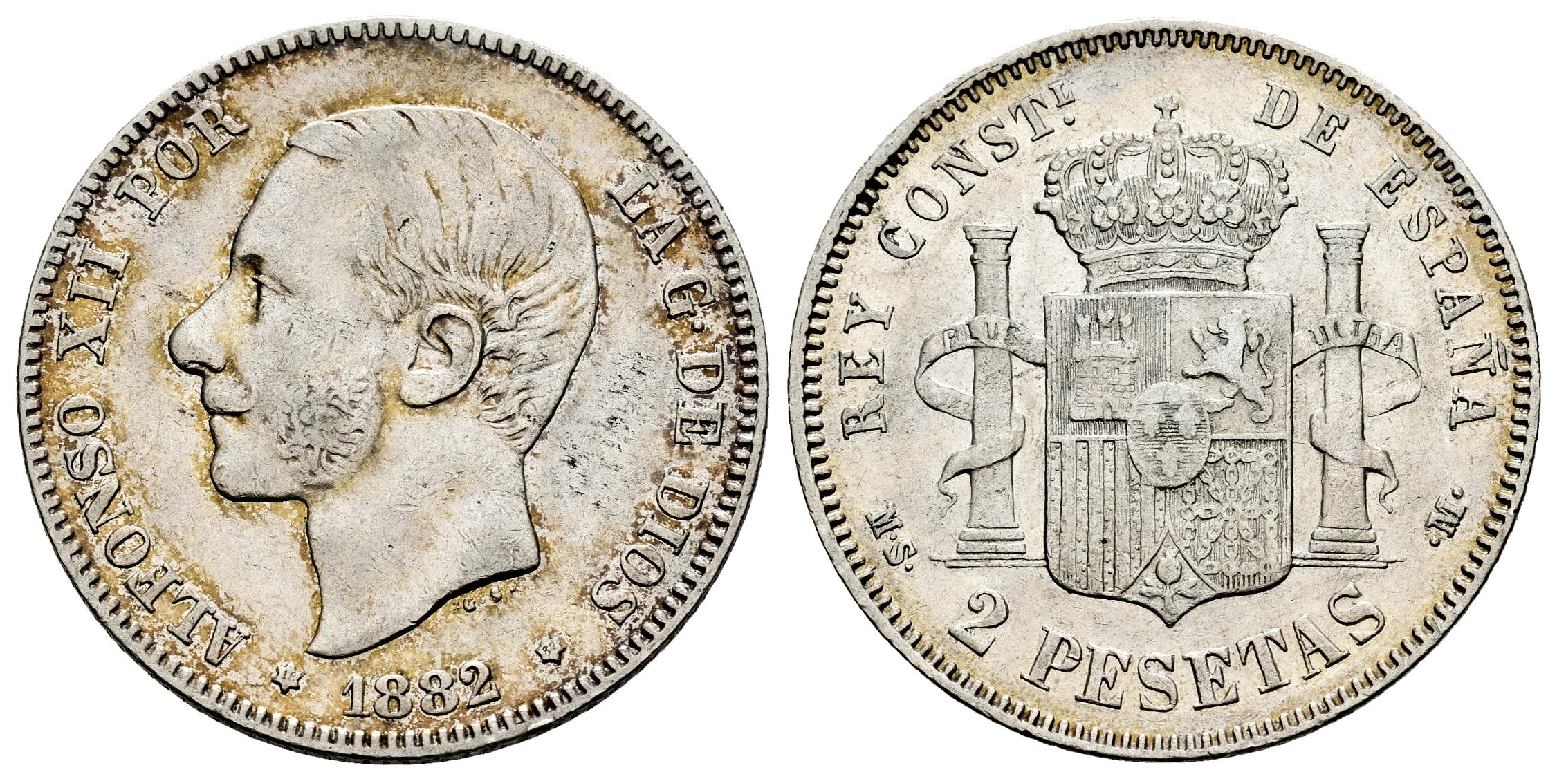 Centenario de la Peseta (1868-1931). Alfonso XII (1874-1885). 2 pesetas. 1882*18-82. Madrid. MSM. (Cal-31). Ag. 9,96 g. MBC+. Est...35,00.
