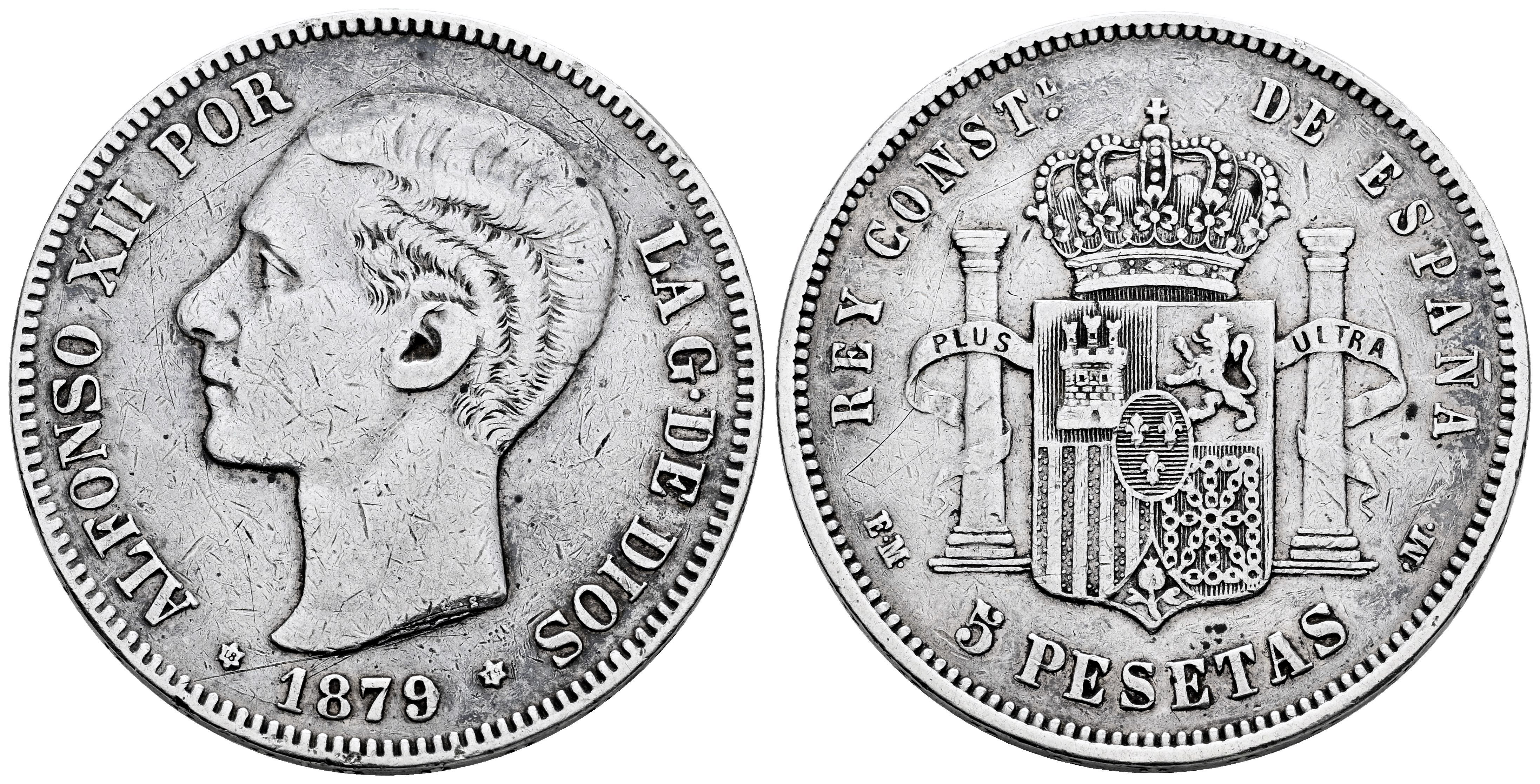 Centenario de la Peseta (1868-1931). Alfonso XII (1874-1885). 5 pesetas. 1879*18-79. Madrid. EMM. (Cal-42). Ag. 24,91 g. Limpiada. MBC-. Est...45,00.