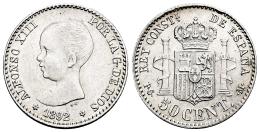 Centenario de la Peseta (1868-1931). Alfonso XIII (1886-1931). 50 céntimos. 1892*9-2. Madrid. PGM. (Cal-38). Ag. 2,47 g. Rayitas. Brillo original. EBC+. Est...45,00.