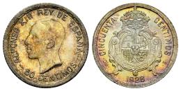 Centenario de la Peseta (1868-1931). Alfonso XIII (1886-1931). 50 céntimos. 1826. Madrid. PCS. (Cal-50). Ag. 2,47 g. Tono iridiscente. SC-. Est...25,00.