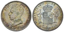 Centenario de la Peseta (1868-1931). Alfonso XIII (1886-1931). 2 pesetas. 1905*19-05. Madrid. SMV. (Cal-88). Ag. 10,01 g. Bonita pátina. EBC+. Est...45,00.
