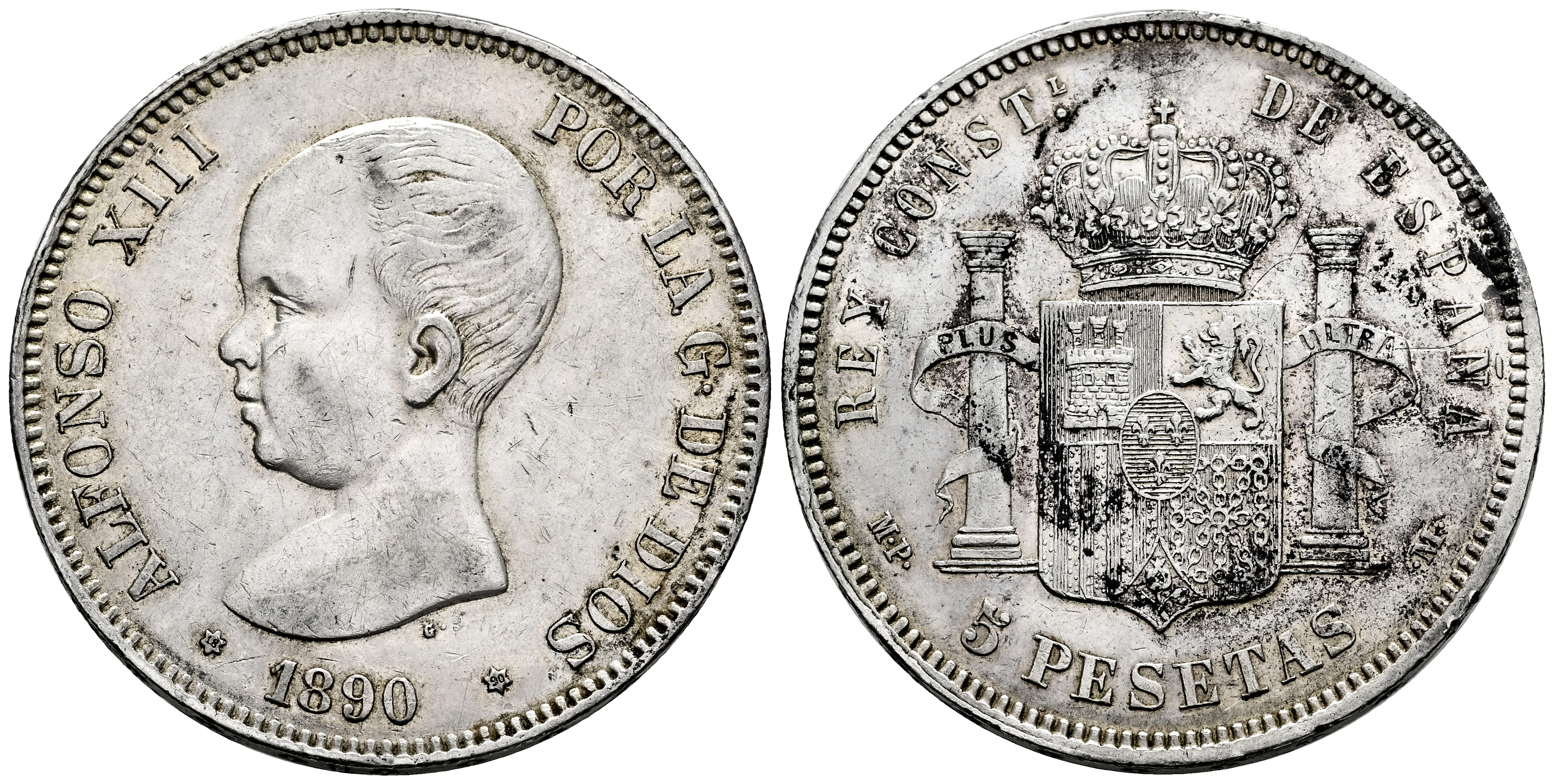 Centenario de la Peseta (1868-1931). Alfonso XIII (1886-1931). 5 pesetas. 1890*18-90. Madrid. MPM. (Cal-95). Ag. 25,06 g. Limpiada. MBC+. Est...45,00.