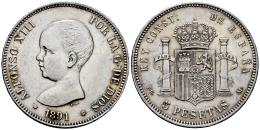 Centenario de la Peseta (1868-1931). Alfonso XIII (1886-1931). 5 pesetas. 1891*_8-91. Madrid. PGM. (Cal-98). Ag. 25,25 g. Restos de brillo original. EBC-. Est...100,00.