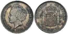 Centenario de la Peseta (1868-1931). Alfonso XIII (1886-1931). 5 pesetas. 1893*18-93. Madrid. PGL. (Cal-103). Ag. 25,07 g. Leves marquitas. Bonita pátina. EBC. Est...200,00.