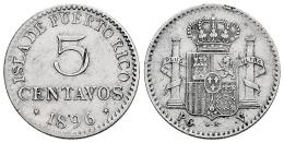 Centenario de la Peseta (1868-1931). Alfonso XIII (1886-1931). 5 centavos. 1896. Puerto Rico. PGV. (Cal-124). Ag. 1,25 g. Raya en anverso. Golpe en canto. Limpiada. MBC+. Est...60,00.