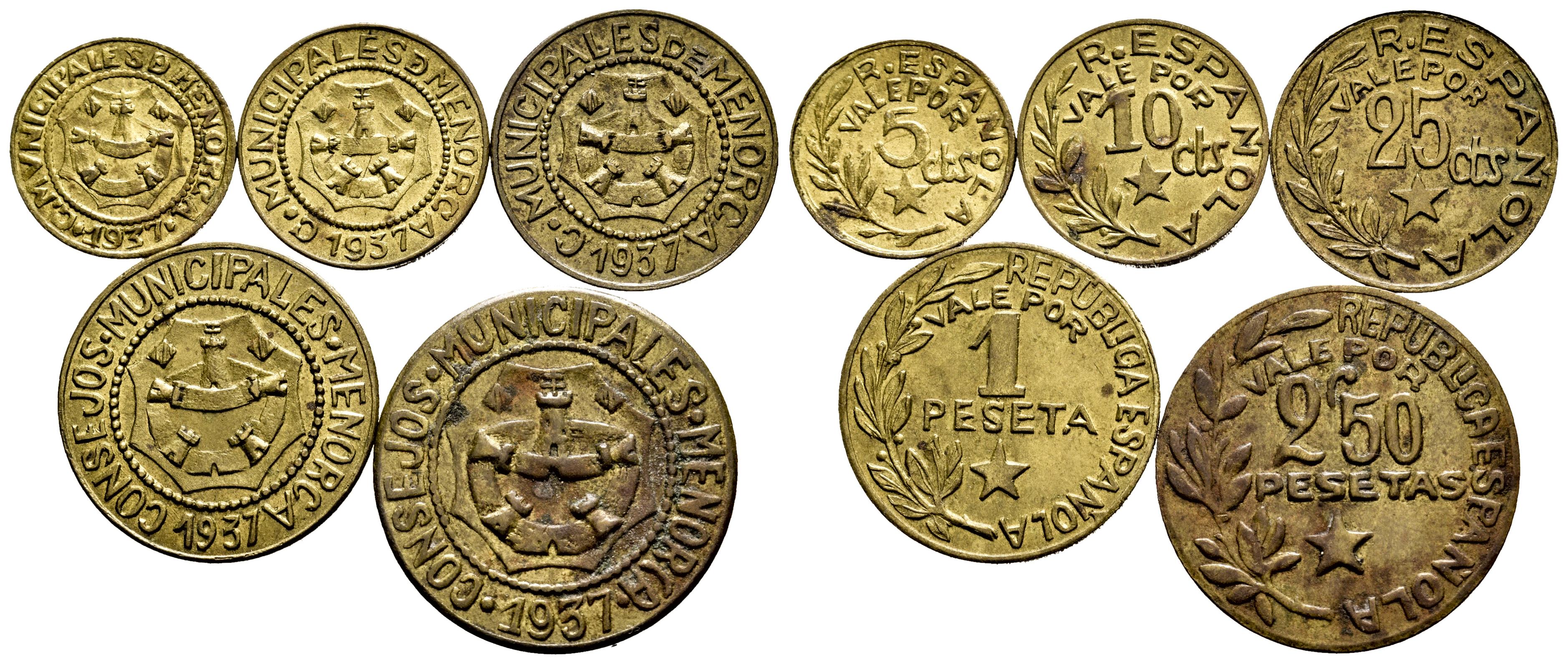 Guerra Civil (1936-1939). Serie completa de 5 valores. 1937. Menorca. (Cal-20/24). Ae. MBC+/EBC. Est...160,00.