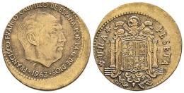 Estado Español (1936-1975). Error. 1 peseta. 1963*19-64. Madrid. (Cal-64). Al-Cu. 3,75 g. Desplazada y con canto liso. EBC. Est...45,00.