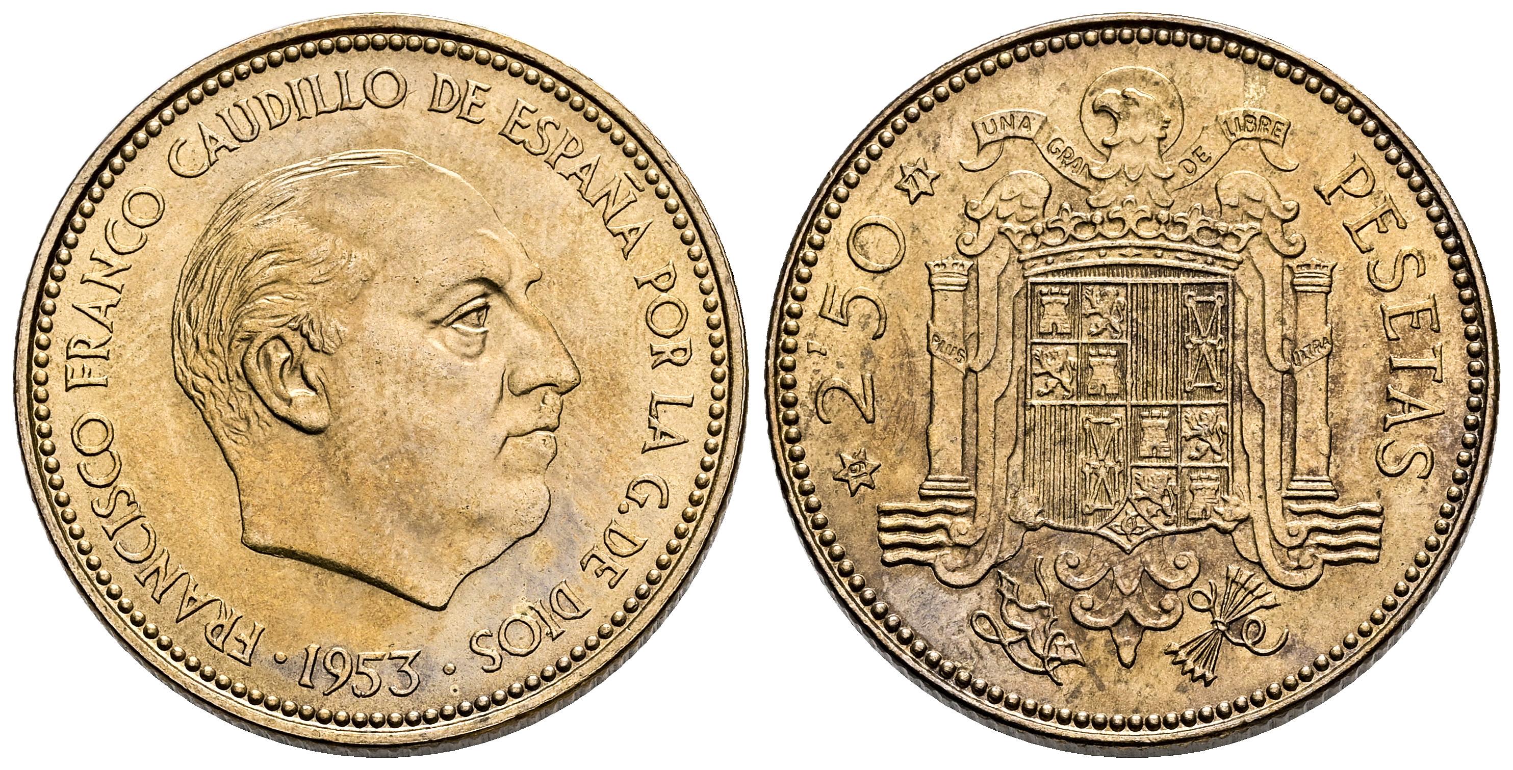 Estado Español (1936-1975). 2,50 pesetas. 1953*19-71. Madrid. (Cal-90). 7,17 g. Escasa. SC. Est...120,00.