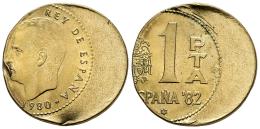 Juan Carlos I (1975-2014). Error. 1 peseta. 1980*81. Madrid. (Cal-9). Cu-Ni. 3,52 g. Muy desplazada y canto liso. SC. Est...90,00.