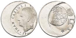 Juan Carlos I (1975-2014). Error. 5 pesetas. 1980*80. Madrid. (Cal-41). Cu-Ni. 5,74 g. Muy desplazada y canto liso. SC. Est...90,00.
