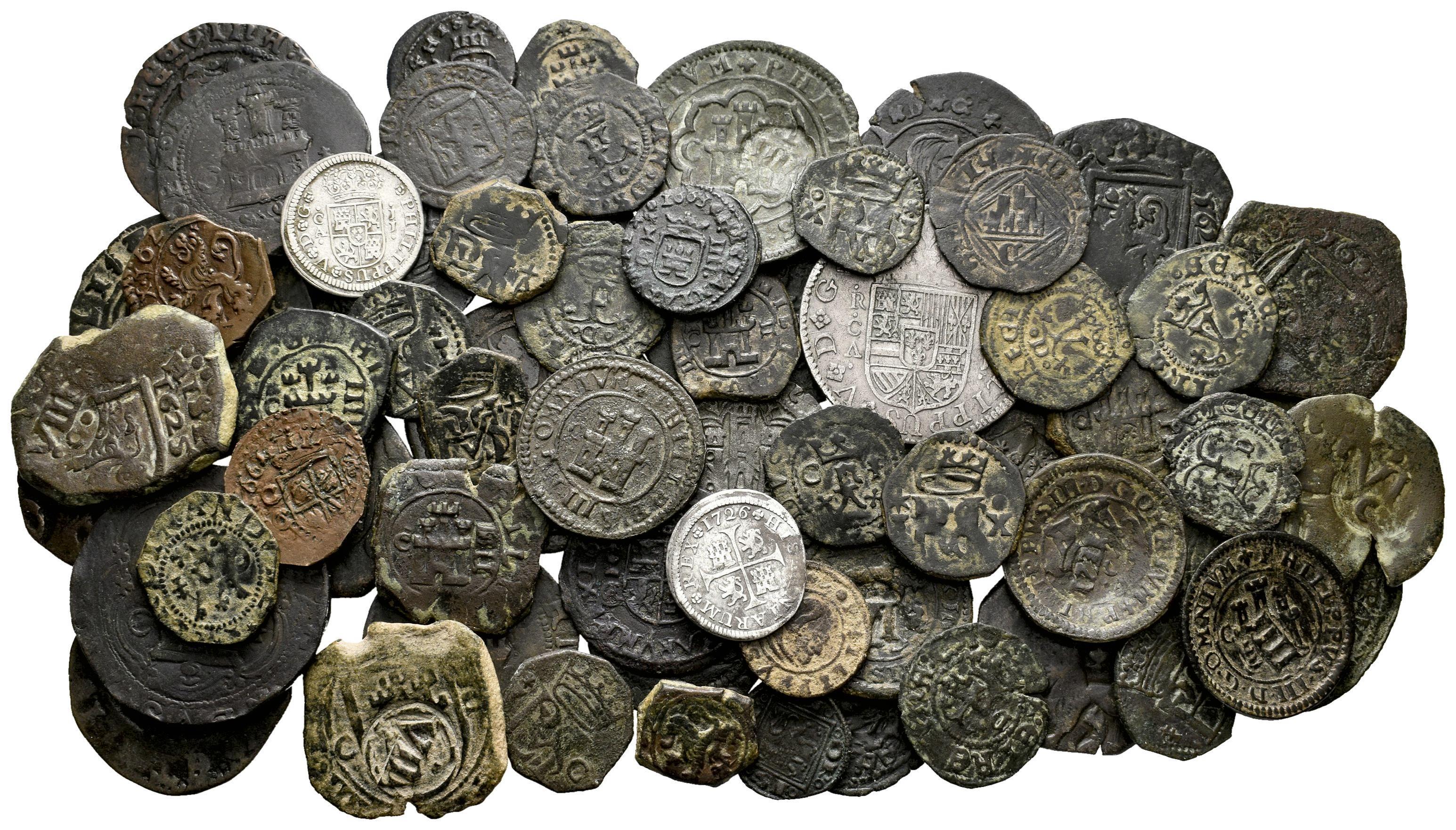 Lote de 65 monedas, todas de la ceca de Cuenca. Presenta una amplia variedad de valores, tipos y fechas. Abarca los reinados de Alfonso X, Enrique IV, Reyes Católicos, Felipe II, Felipe III, Carlos II, Felipe IV y Felipe V. Incluye algunas piezas escasas. Ae/Ag. Es imprescindible un riguroso examen. SOLO ENVÍO A ESPAÑA PENÍNSULA. NO SE ADMITE DEVOLUCIÓN. BC-/MBC+. Est...300,00.