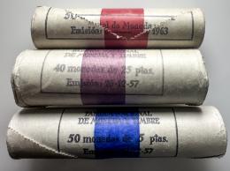 Lote de 3 cartuchos de la FNMT; 1 peseta 1963*75, 5 pesetas 1957*74 y 25 pesetas 1957*19-69. Es imprescindible un riguroso examen. SOLO ENVÍO A ESPAÑA PENÍNSULA. NO SE ADMITE DEVOLUCIÓN. SC. Est...70,00.