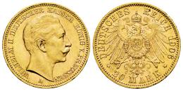 Alemania. Wilhelm II. 20 mark. 1906. Berlín. A. (Km-521). (Fried-3831). Au. 7,96 g. Brillo original. EBC. Est...700,00.