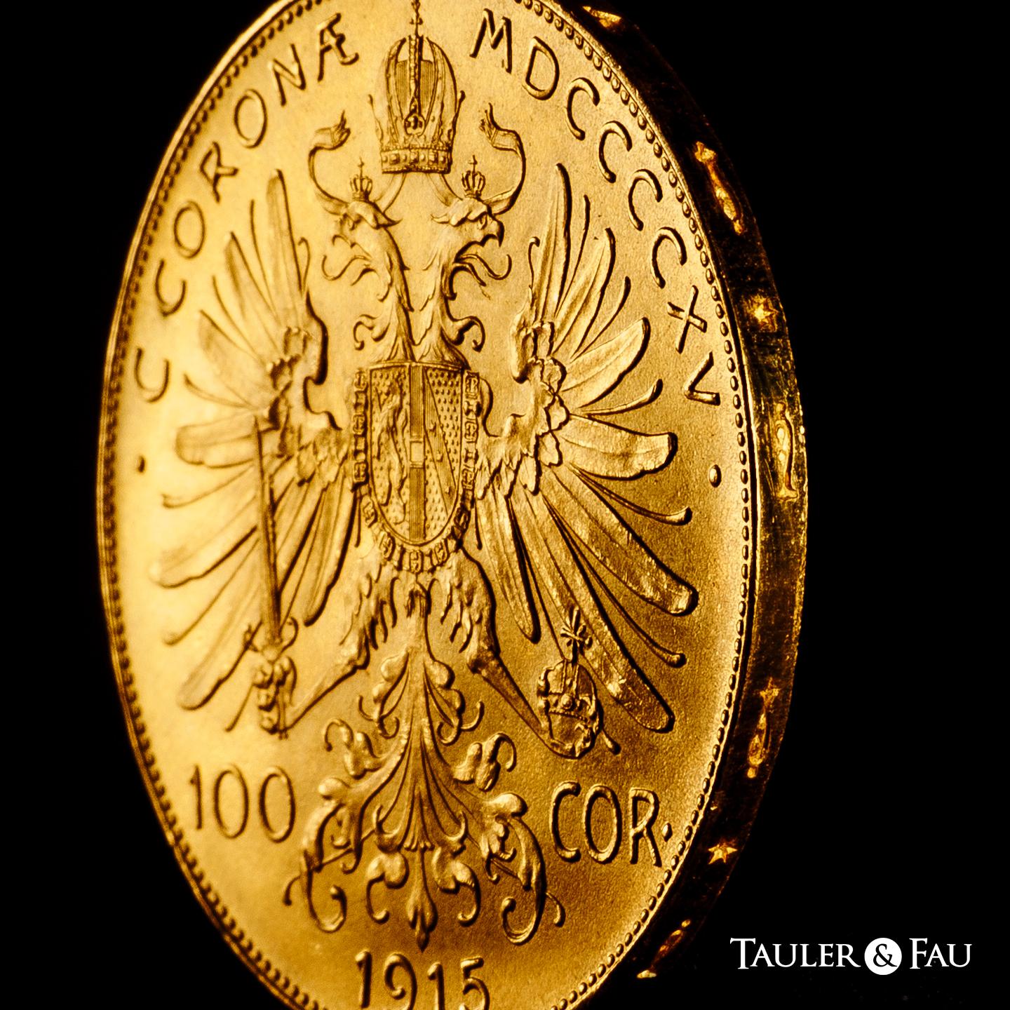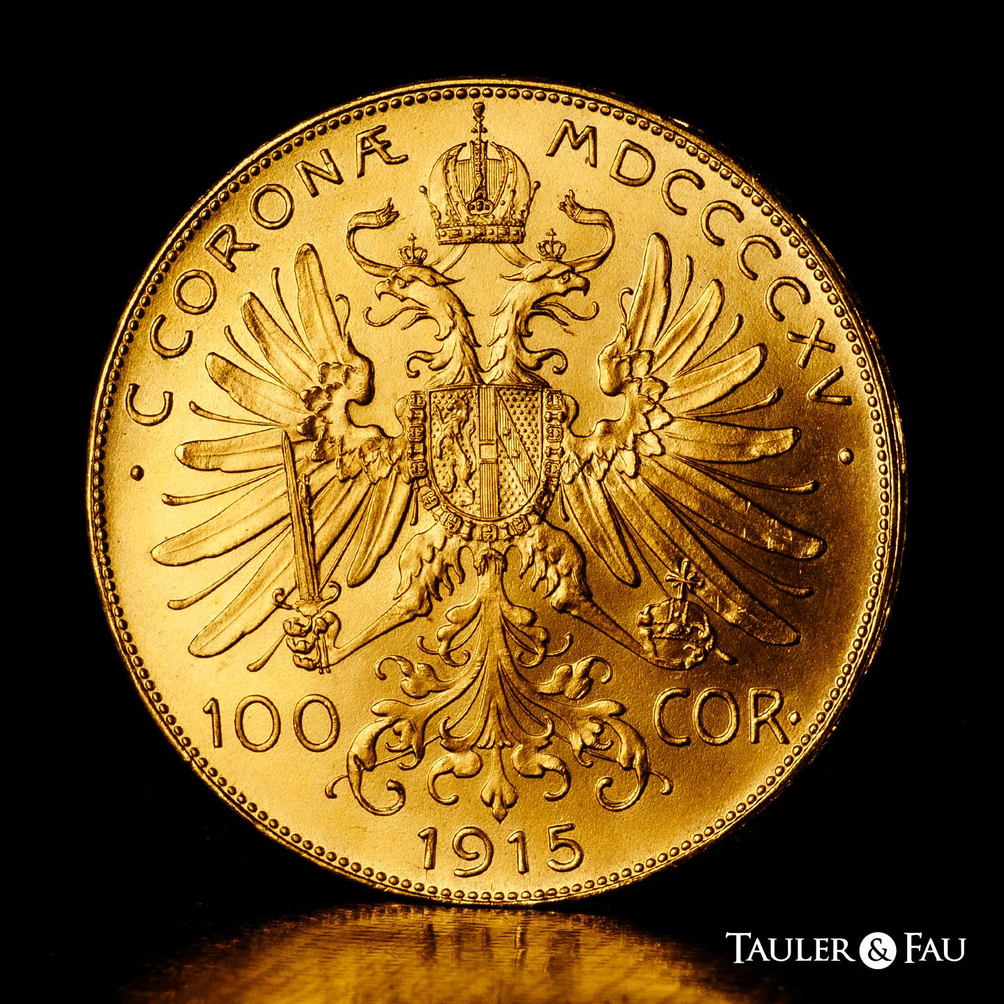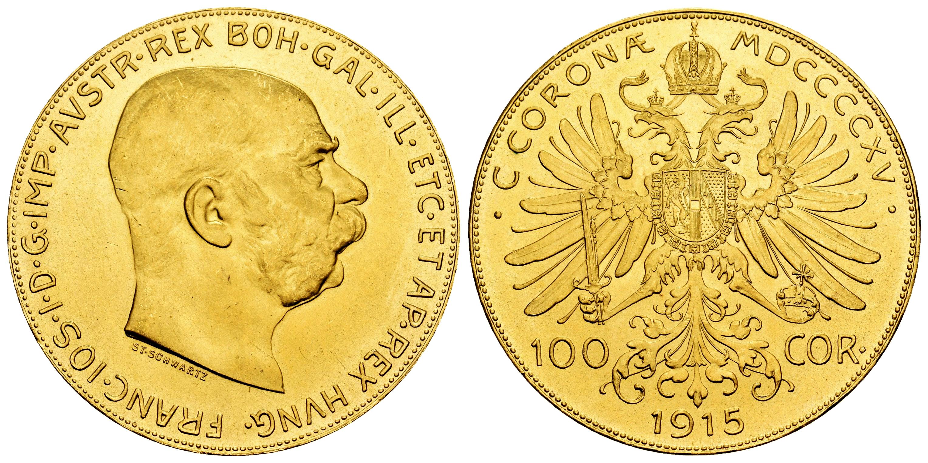 Austria. Franz Joseph I (1848-1916). 100 coronas. 1915. (Km-2819). (Fr-507R). Au. 33,84 g. Reacuñación oficial. Brillo original. SC-/SC. Est...3200,00.