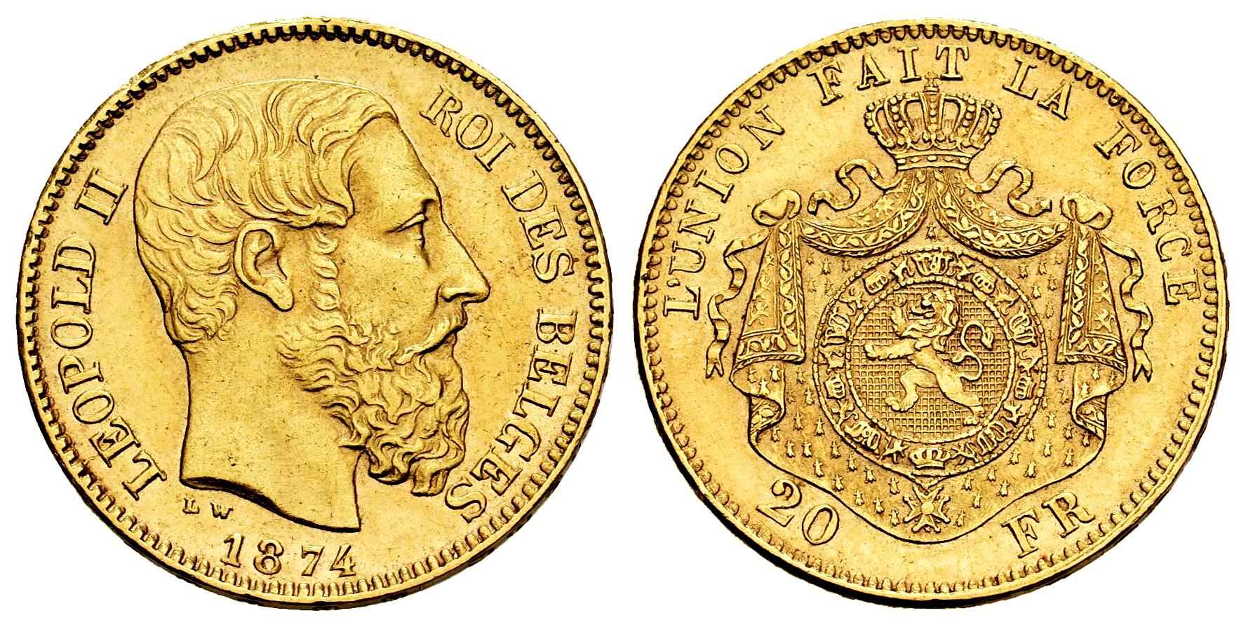 Bélgica. Leopold II. 20 francs. 1871. (Km-37). (Fried-412). Au. 6,45 g. EBC. Est...600,00.