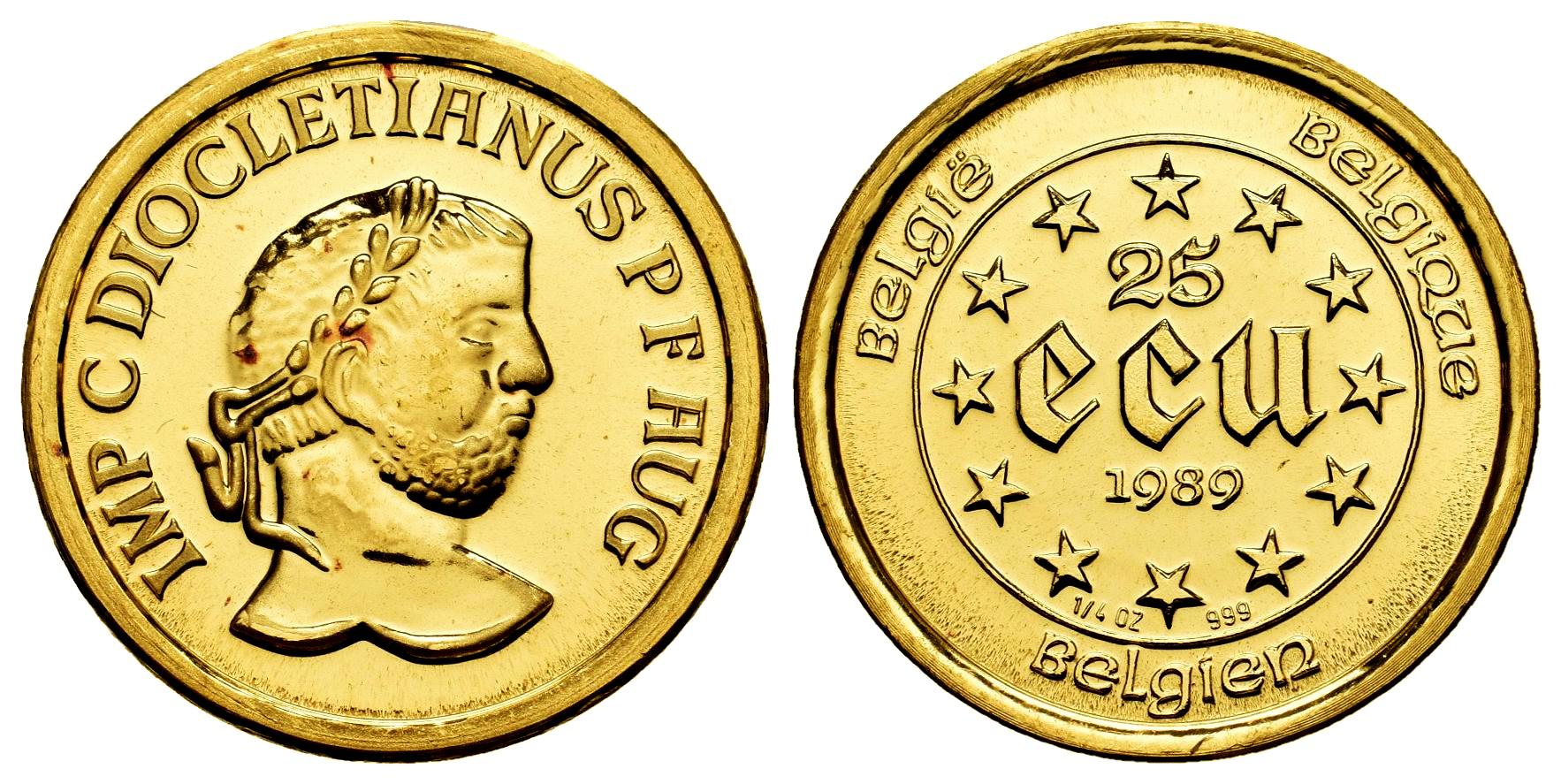 Bélgica. Baudouin I (1951-1993). 25 Ecu. 1989. (Km-148). Au. 7,83 g. Diocleciano. PROOF. Est...1000,00.