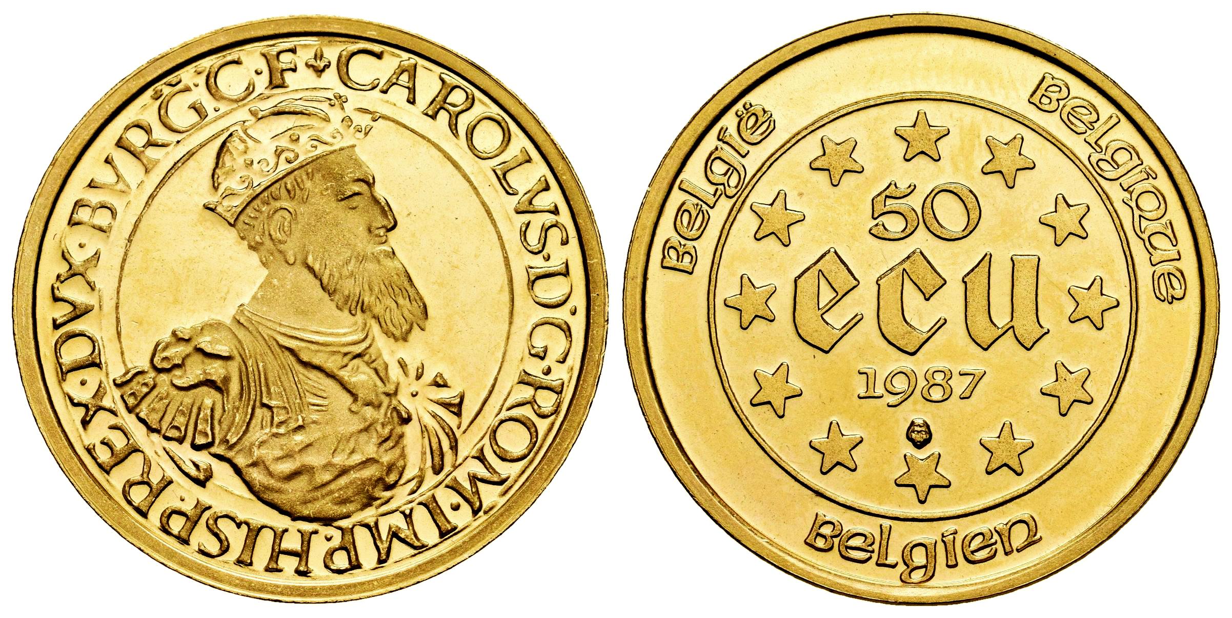 Bélgica. 50 ecus. 1987. (Km-167). (Fried-427). Au. 17,25 g. Pleno brillo original. PROOF. Est...1600,00.