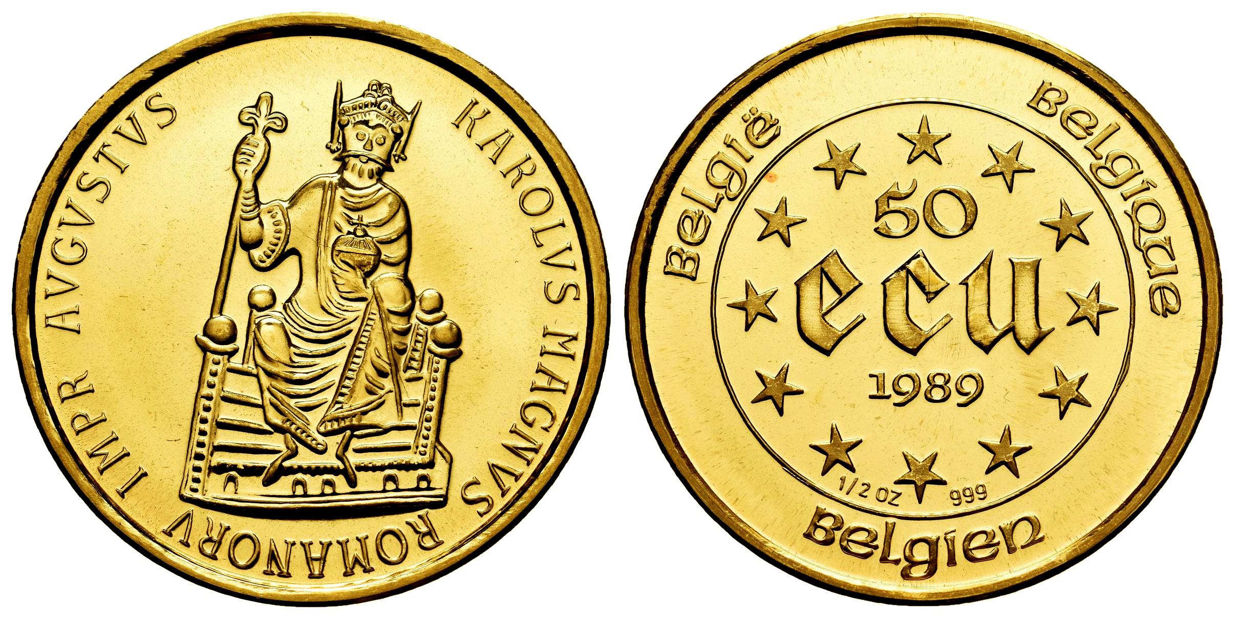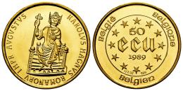 Bélgica. Baudouin I (1951-1993). 50 Ecu. 1989. (Km-149). Au. 15,64 g. Carlomagno. PROOF. Est...2000,00.