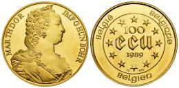 Bélgica. Baudouin I (1951-1993). 100 ecus. 1989. (Km-175). Au. 31,14 g. Maria Theresia. PROOF. Est...4000,00.
