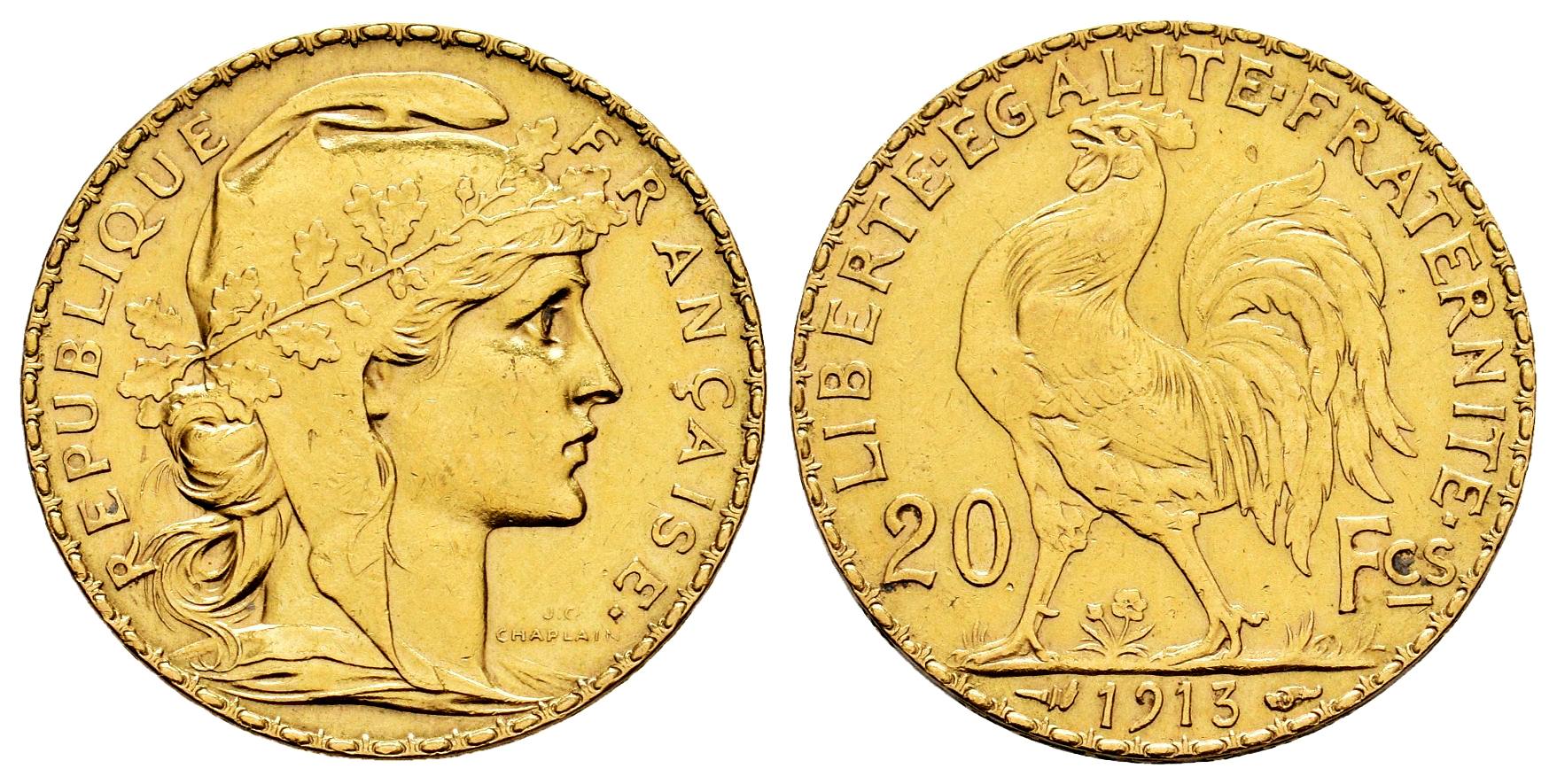 Francia. 20 francs. 1913. París. (Km-847). (Fried-596). Au. 6,46 g. Limpiada. EBC/EBC-. Est...600,00.