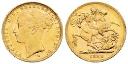 Gran Bretaña. Victoria. 1 sovereign. 1883. (Km-736.1). (Fried-16). Au. 7,98 g. Golpecitos en el canto. Brillo original. EBC+. Est...750,00.