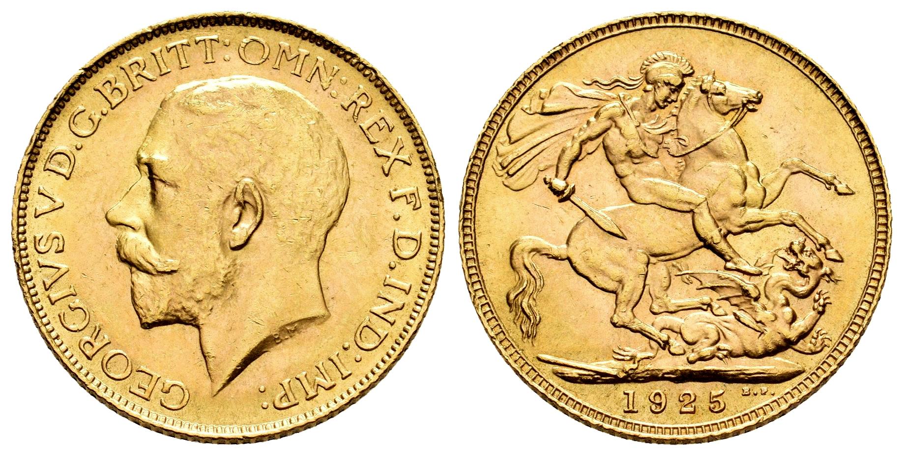 Gran Bretaña. George V. 1 sovereign. 1925. (Km-820). Au. 7,98 g. Leves golpecitos en el canto. EBC+. Est...600,00.