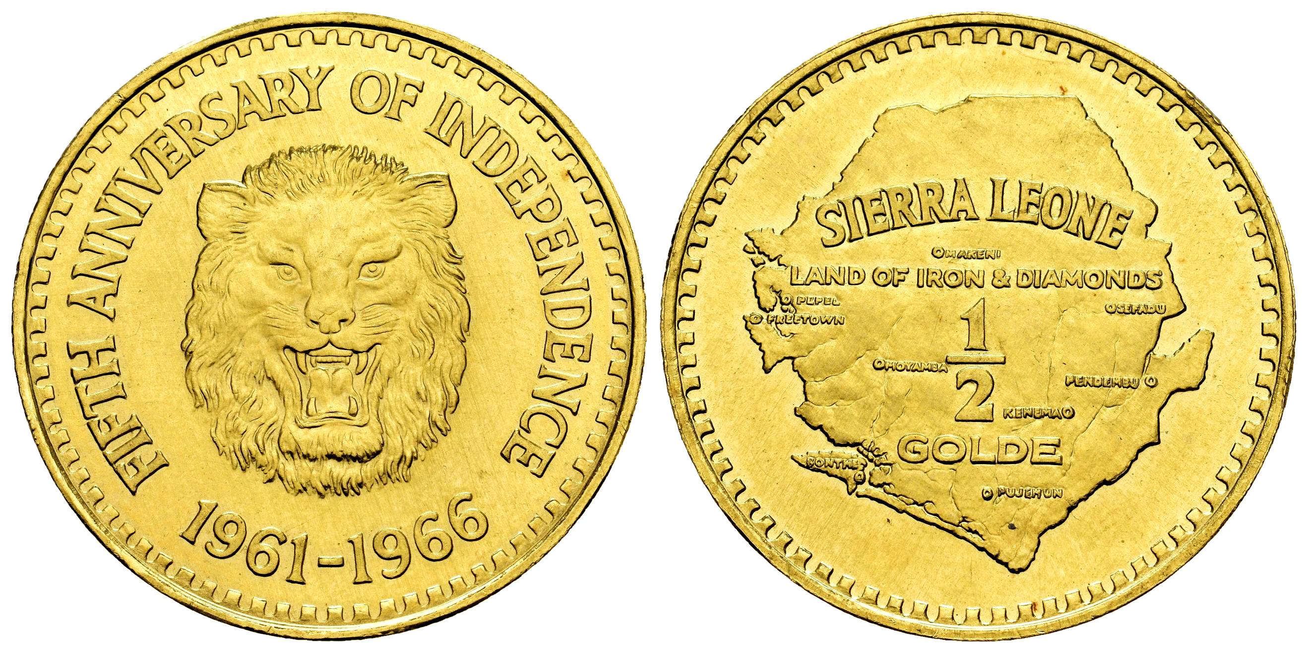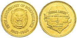 Sierra Leona. 1/2 Golde. 1966. (Km-23). (Fried-2). Au. 27,26 g. 5º Aniversario de la Independencia. Acuñación de 2500 ejemplares. SC. Est...2500,00.