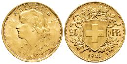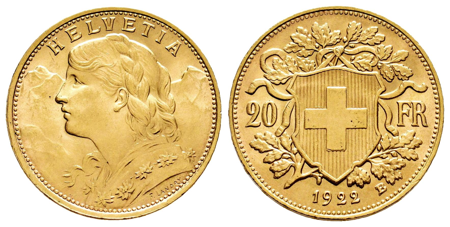 Suiza. 20 francs. 1922. Berna. B. (Km-35.1). (Fried-499). Au. 6,45 g. SC. Est...600,00.