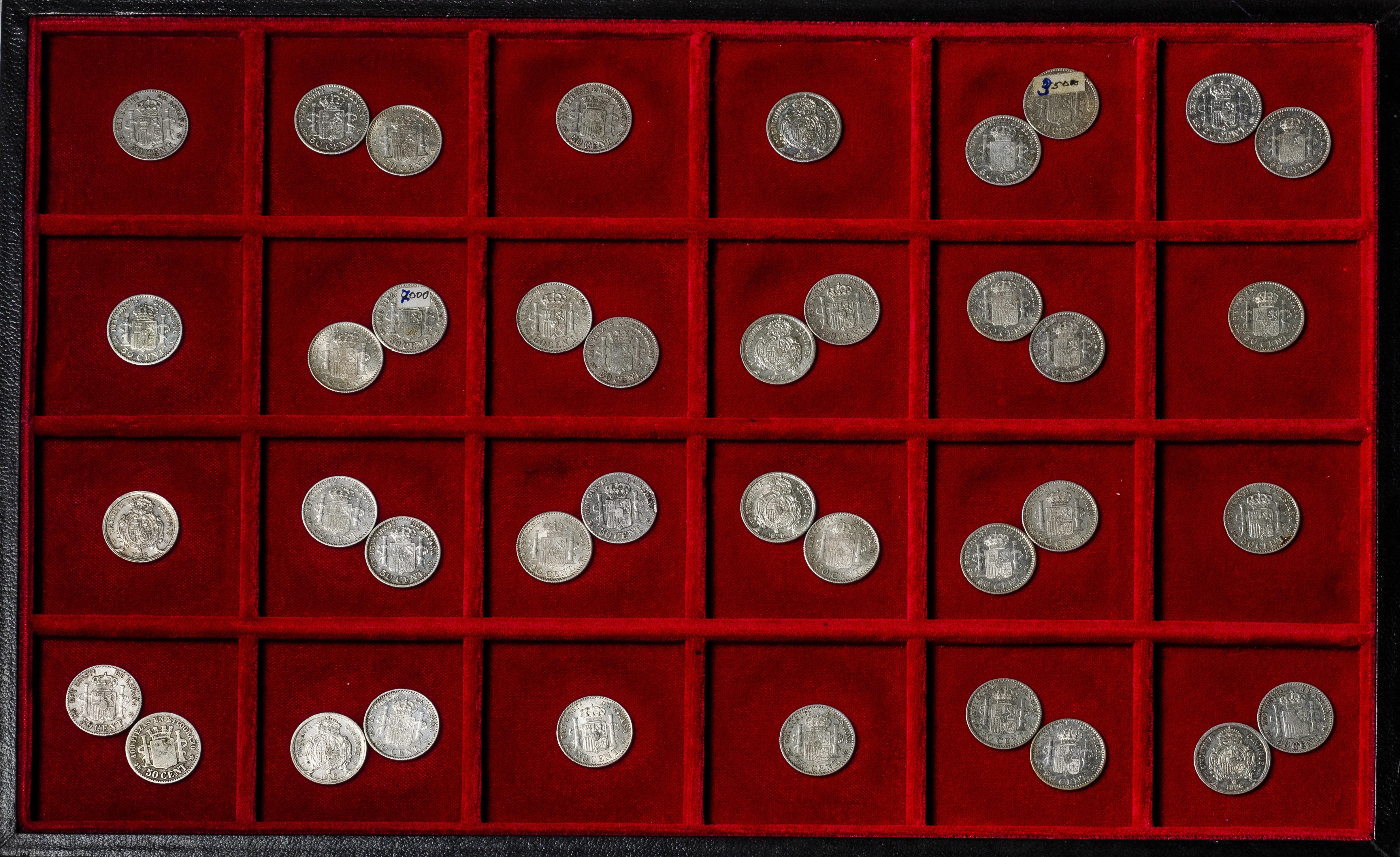 Centenario de la Peseta (1868-1931). Lote de 38 monedas de 50 céntimos. Variedad de reyes y fechas. Ag. 96,60 g. 0,835 milésimas. Es imprescindible un riguroso examen. SOLO ENVÍO A ESPAÑA PENÍNSULA. NO SE ADMITE DEVOLUCIÓN. BC+/MBC+. Est...150,00.