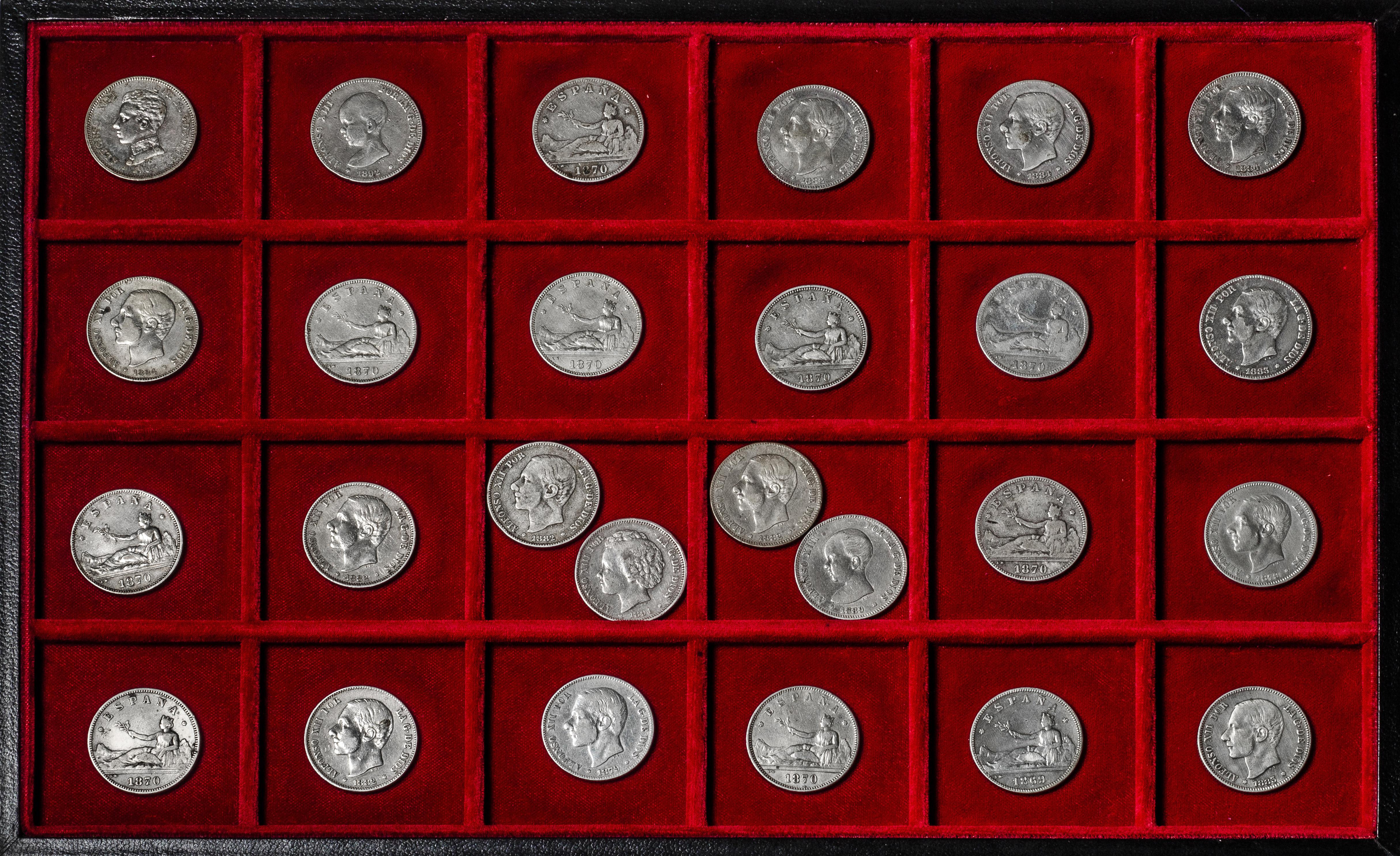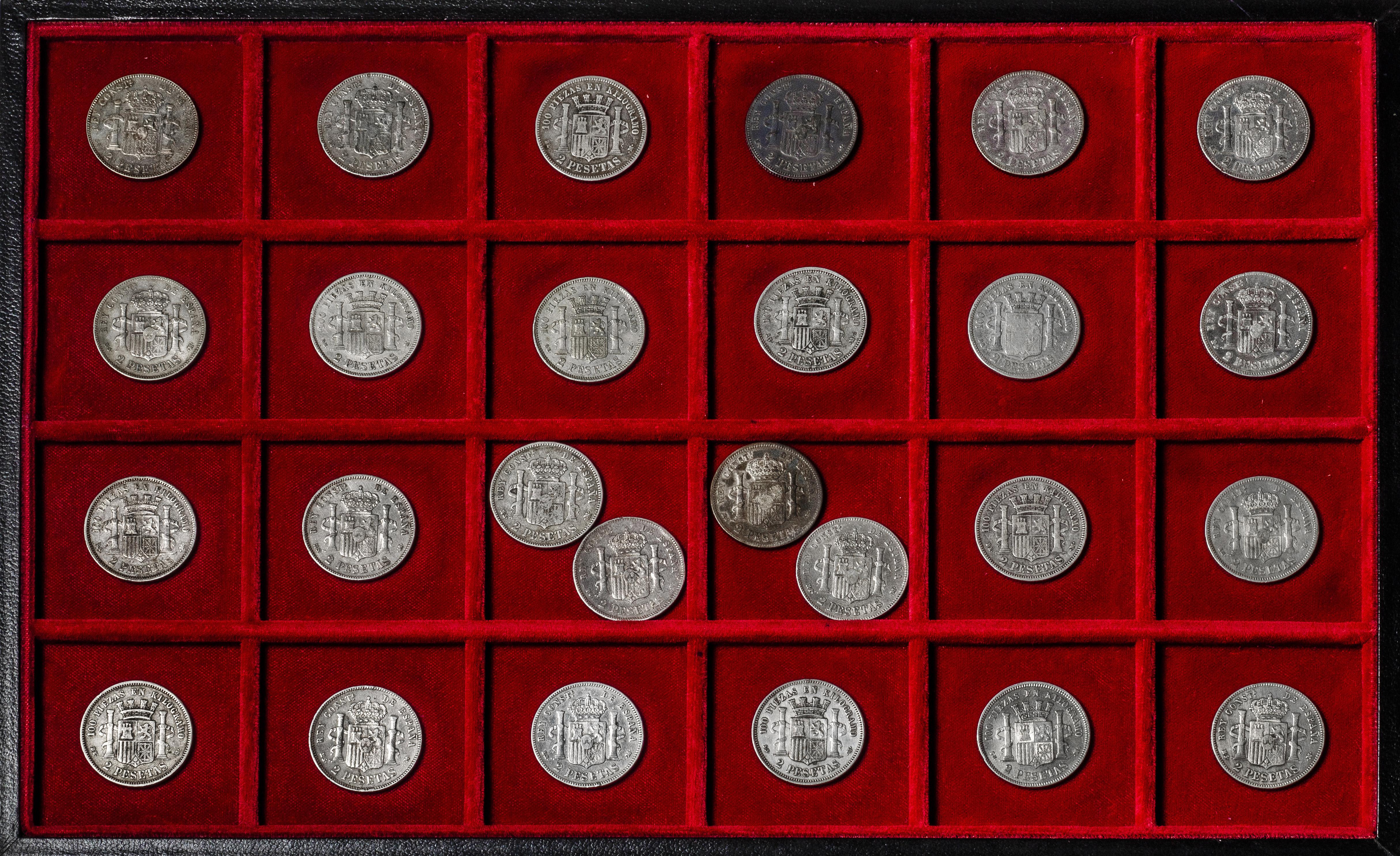 Centenario de la Peseta (1868-1931). Lote de 26 monedas de 2 pesetas. Variedad de reyes y fechas. Ag. 256,56 g. 0,835 milésimas. Es imprescindible un riguroso examen. SOLO ENVÍO A ESPAÑA PENÍNSULA. NO SE ADMITE DEVOLUCIÓN. BC+/MBC+. Est...400,00.