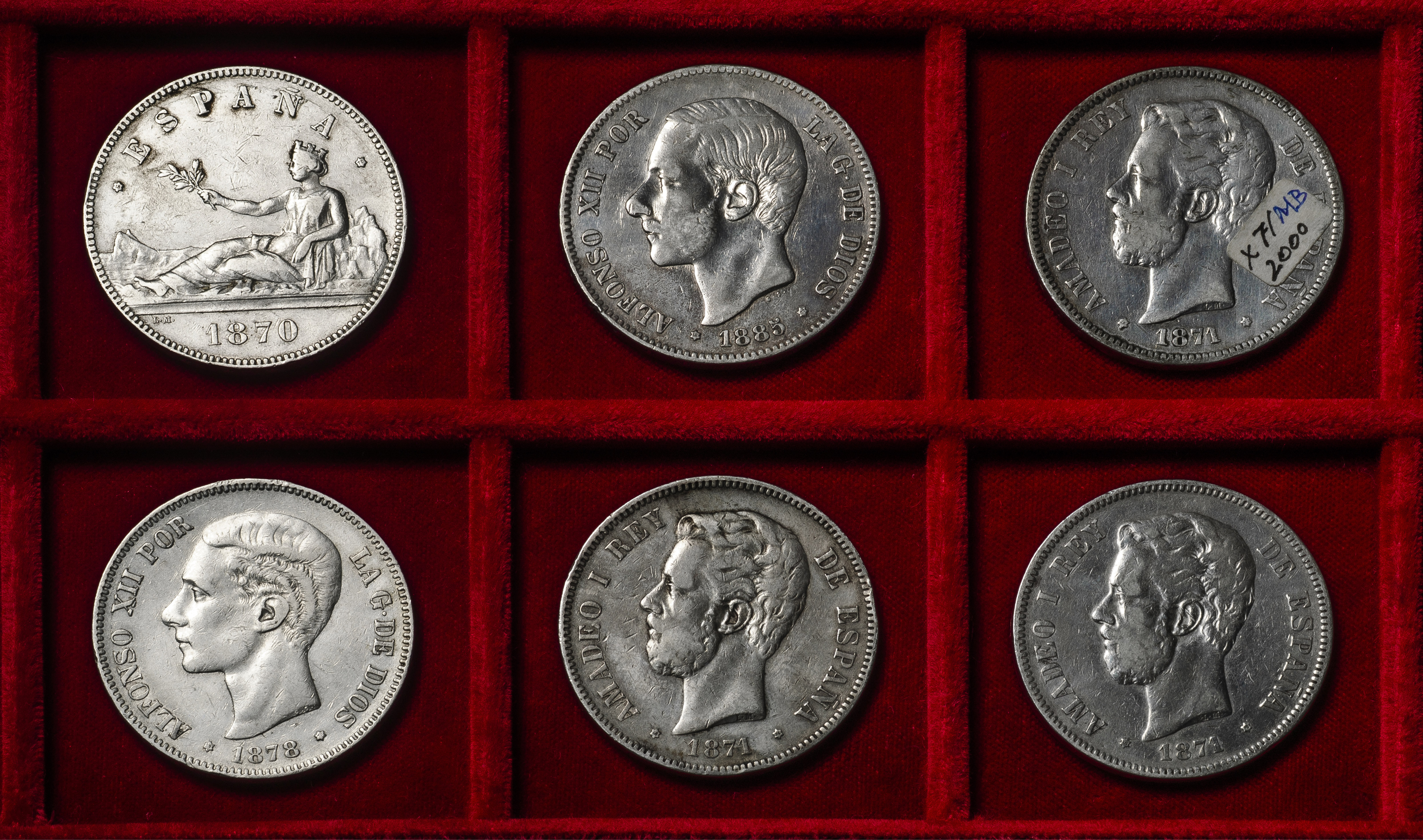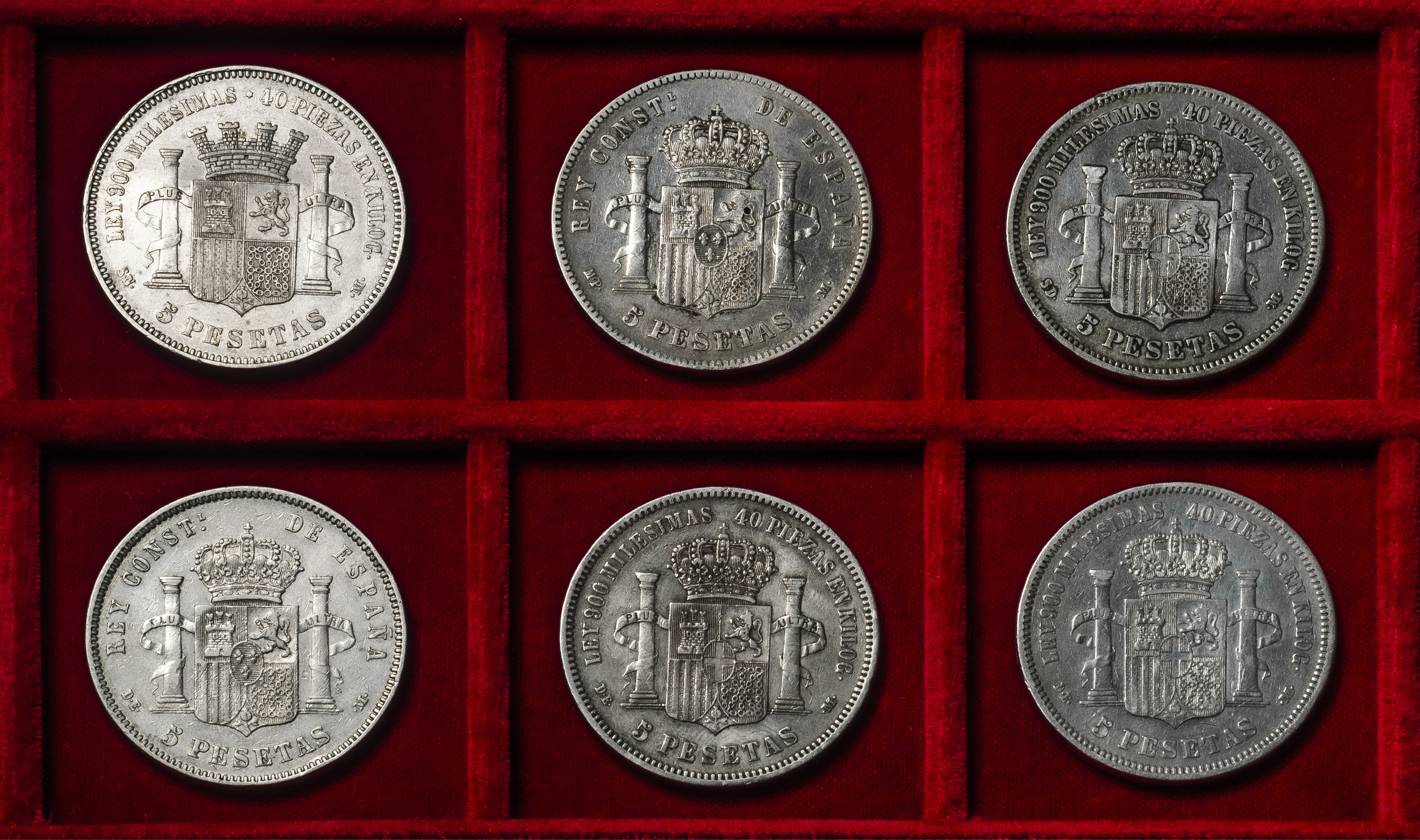 Centenario de la Peseta (1868-1931). Lote de 6 monedas de 5 pesetas. Variedad de reyes y fechas. Ag. 149,13 g. 0,900 milésimas. Es imprescindible un riguroso examen. SOLO ENVÍO A ESPAÑA PENÍNSULA. NO SE ADMITE DEVOLUCIÓN. BC+/MBC+. Est...250,00.