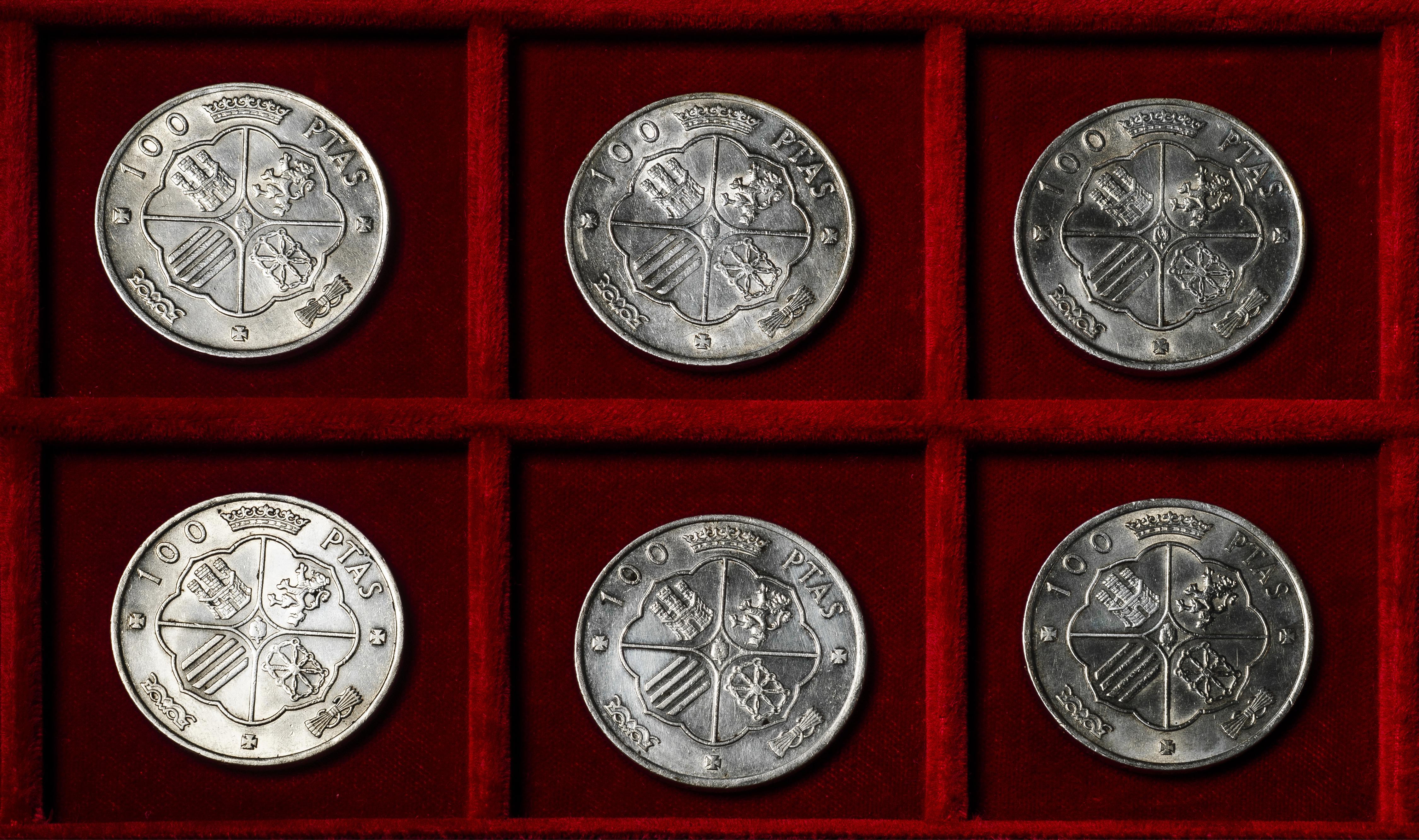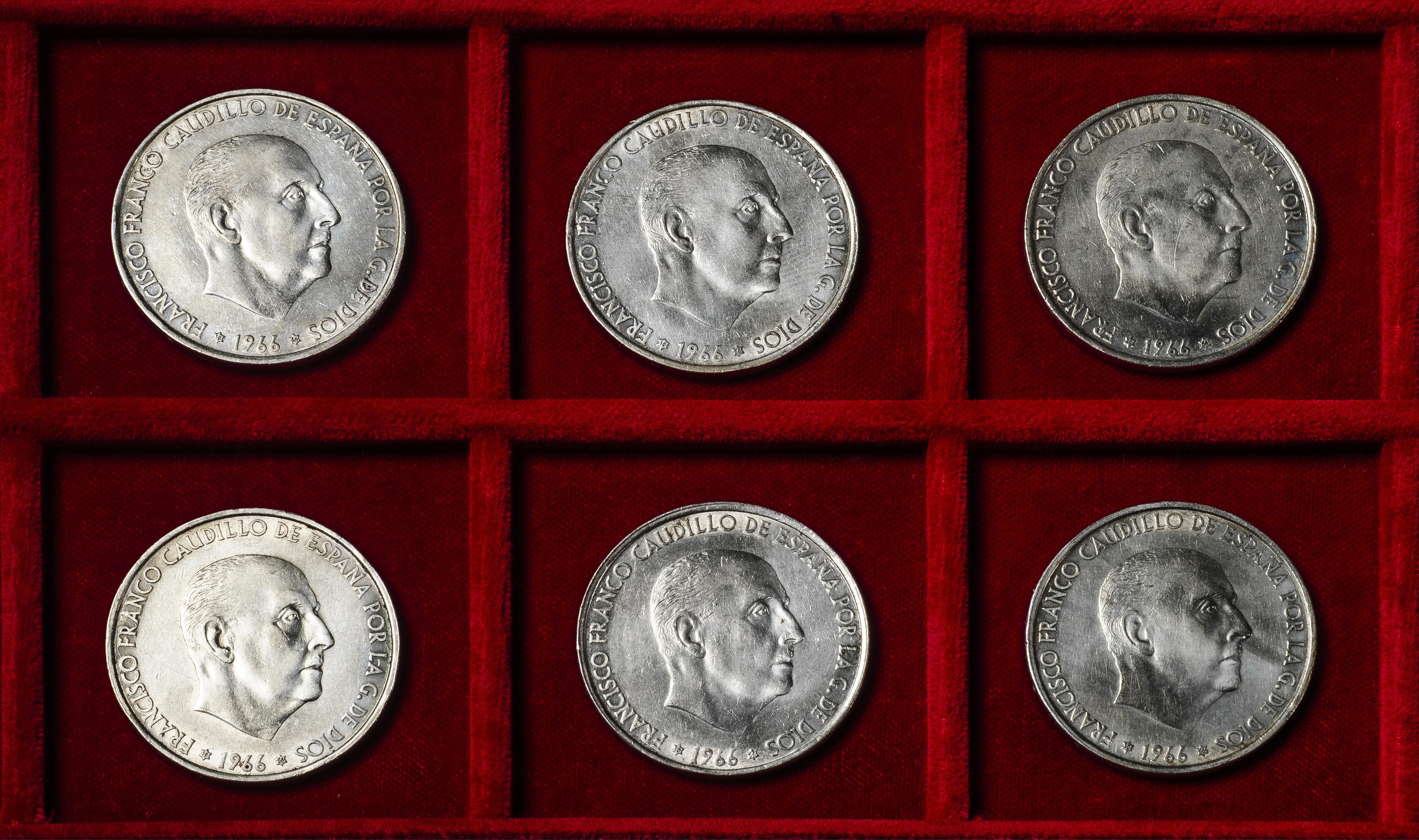 Estado Español (1936-1975). Lote de 6 monedas de 100 pesetas de 1966. Ag. 113,42 g. 0,800 milésimas. Es imprescindible un riguroso examen. NO SE ADMITE DEVOLUCIÓN. MBC+/EBC+. Est...150,00.