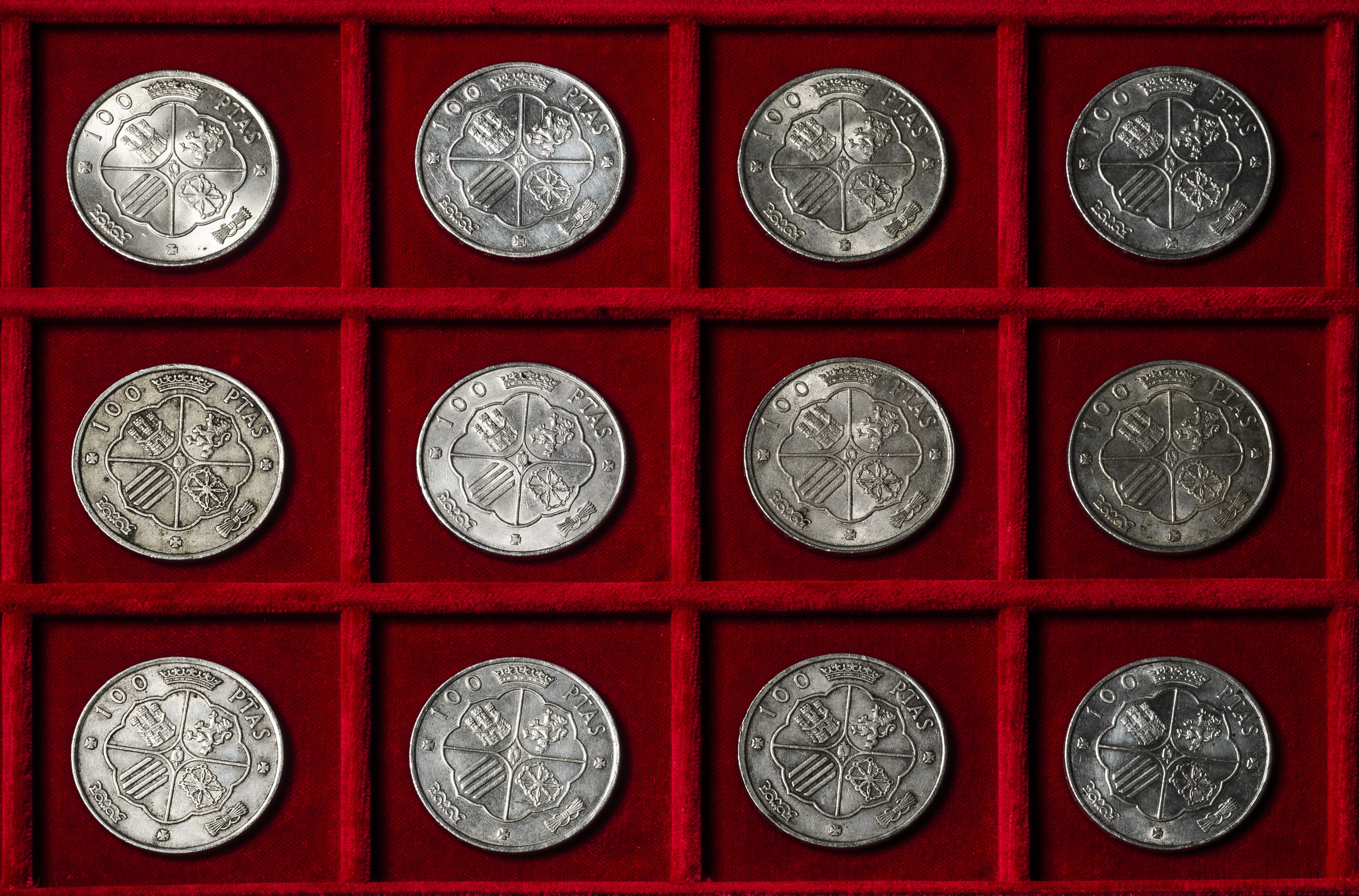 Estado Español (1936-1975). Lote de 12 monedas de 100 pesetas de 1966. Ag. 227,19 g. 0,800 milésimas. Es imprescindible un riguroso examen. NO SE ADMITE DEVOLUCIÓN. MBC+/EBC+. Est...300,00.