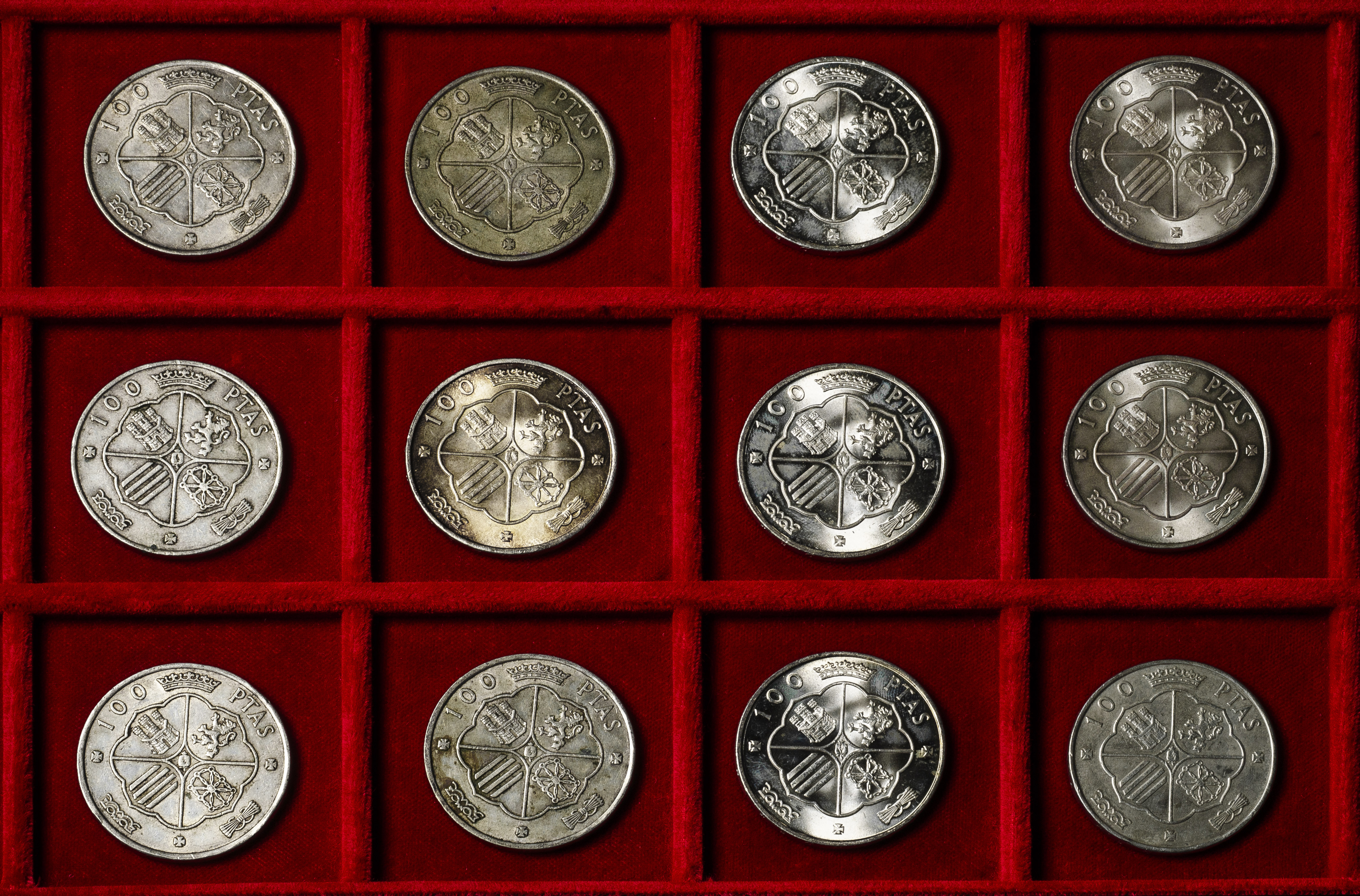 Estado Español (1936-1975). Lote de 12 monedas de 100 pesetas de 1966. Ag. 227,16 g. 0,800 milésimas. Es imprescindible un riguroso examen. NO SE ADMITE DEVOLUCIÓN. MBC+/EBC+. Est...300,00.
