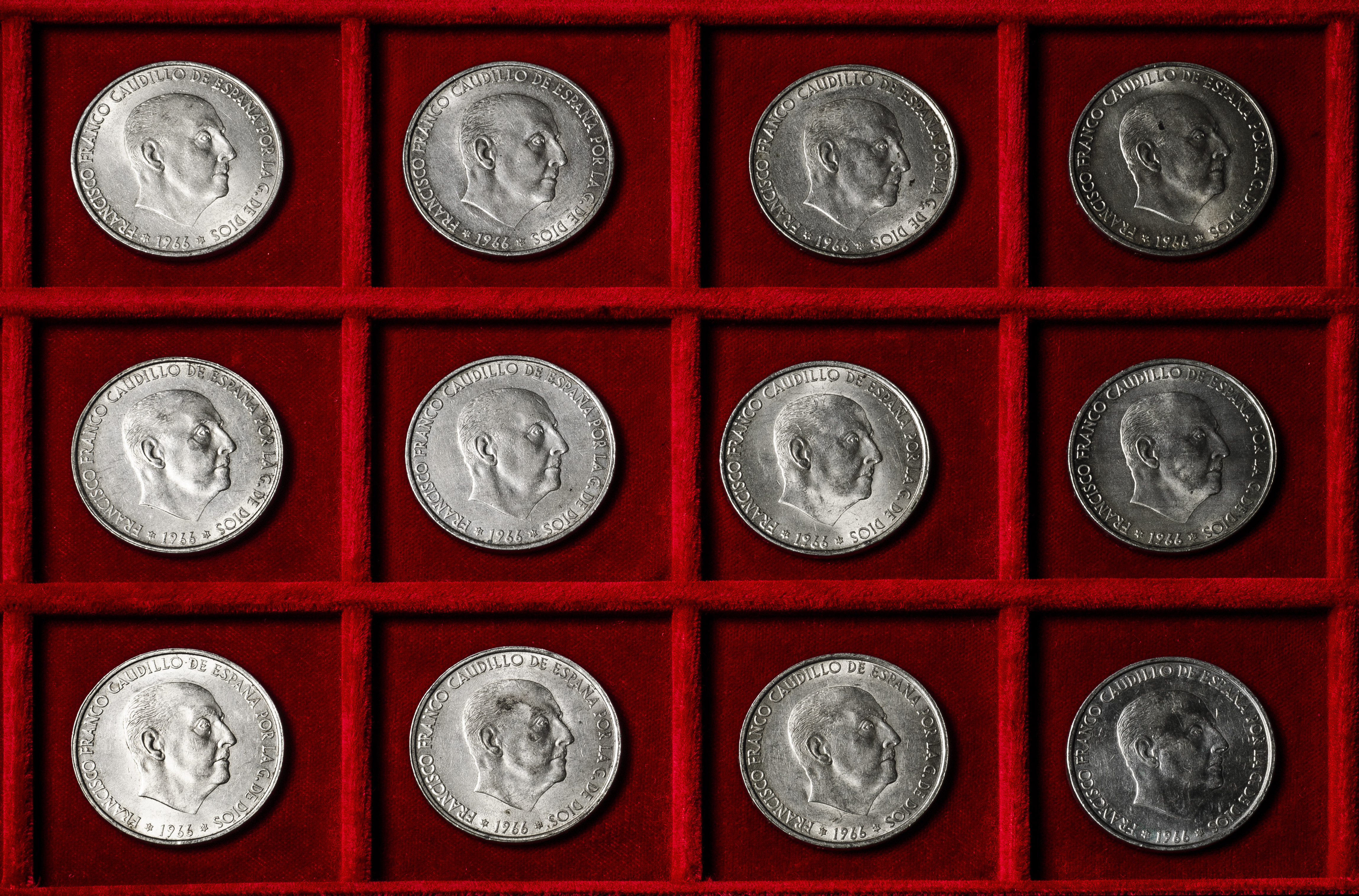 Estado Español (1936-1975). Lote de 12 monedas de 100 pesetas de 1966. Ag. 227,62 g. 0,800 milésimas. Es imprescindible un riguroso examen. NO SE ADMITE DEVOLUCIÓN. MBC+/EBC+. Est...300,00.