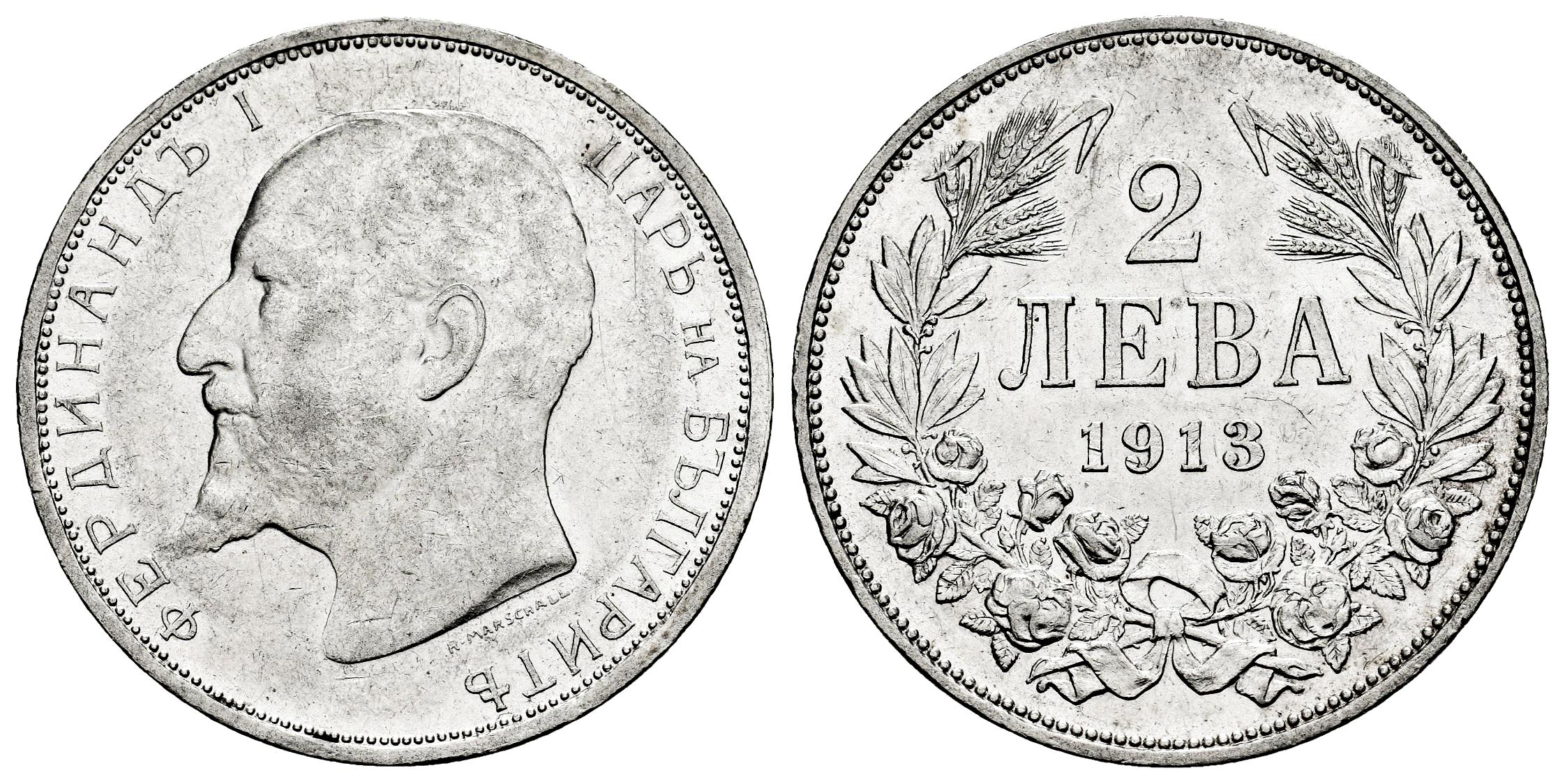 Bulgaria. Ferdinand I. 2 leva. 1913. (Km-32). Ag. 10,00 g. Rayitas. Brillo original. EBC/EBC+. Est...30,00.
