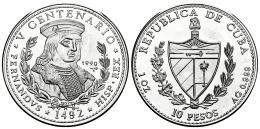 Cuba. 10 pesos. 1990. La Habana. (Km-263). Ag. 31,06 g. Rey Fernando el Católico. Tirada de 5000 piezas. PROOF. Est...80,00.