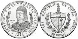 Cuba. 10 pesos. 1990. La Habana. (Km-264). Ag. 31,06 g. Reina Isabel la Católica. Tirada de 5000 piezas. PROOF. Est...80,00.