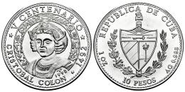Cuba. 10 pesos. 1990. La Habana. (Km-265). Ag. 31,05 g. Cristóbal Colón. Tirada de 5000 piezas. PROOF. Est...80,00.