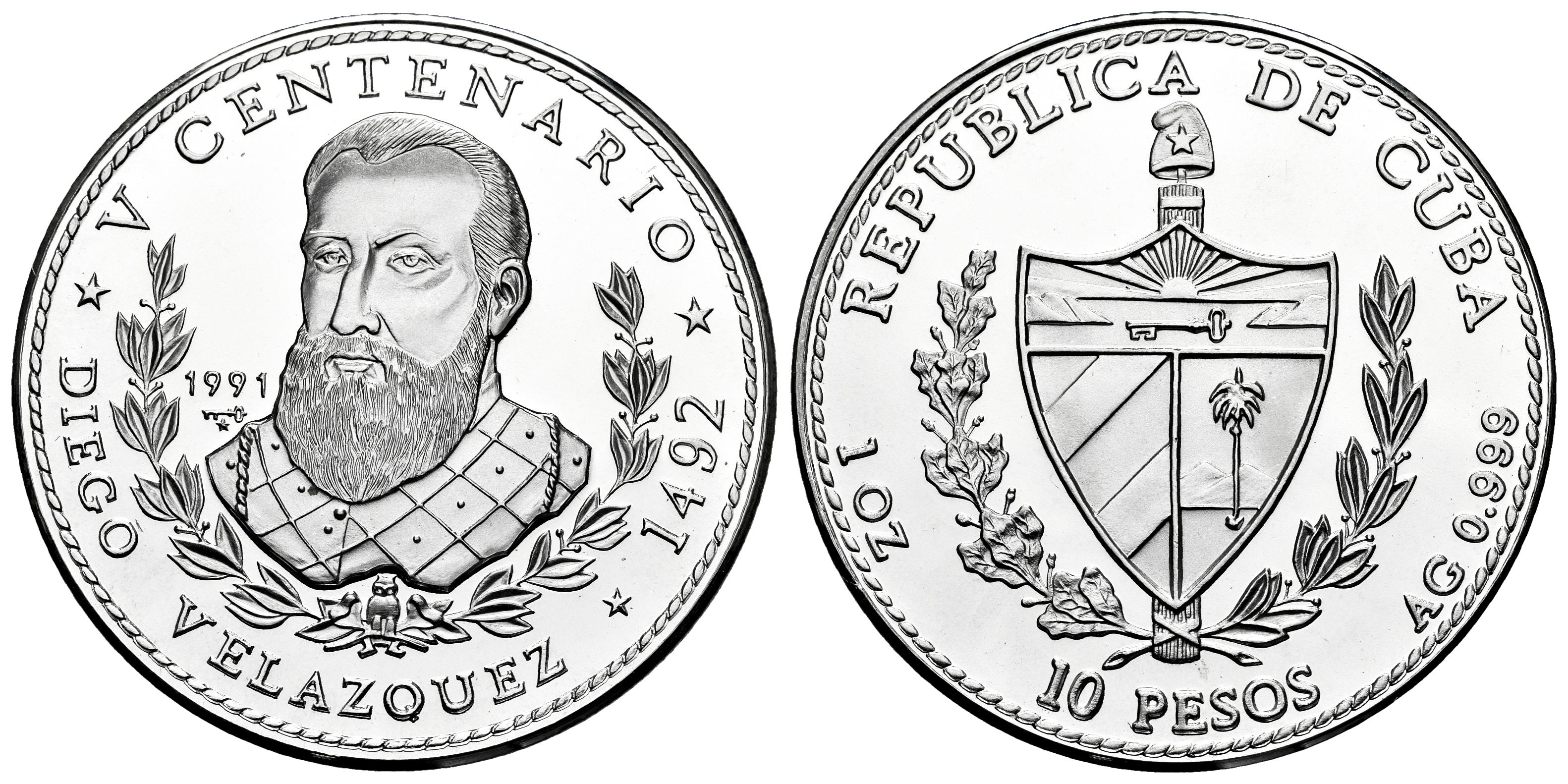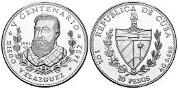 Cuba. 10 pesos. 1991. La Habana. (Km-525). Ag. 31,00 g. Diego Velazquez. Tirada de 3000 piezas. PROOF. Est...80,00.
