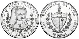 Cuba. 10 pesos. 1991. La Habana. (Km-526). Ag. 31,05 g. Reina Juana. Tirada de 3000 piezas. PROOF. Est...80,00.
