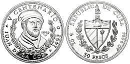 Cuba. 50 pesos. 1990. La Habana. (Km-297). Ag. 155,23 g. Juan de la Cosa. Tirada de 2000 piezas. PROOF. Est...400,00.