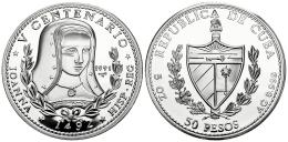 Cuba. 50 pesos. 1991. La Habana. (Km-432). Ag. 155,29 g. Reina Juana. Tirada de 1000 piezas. PROOF. Est...400,00.