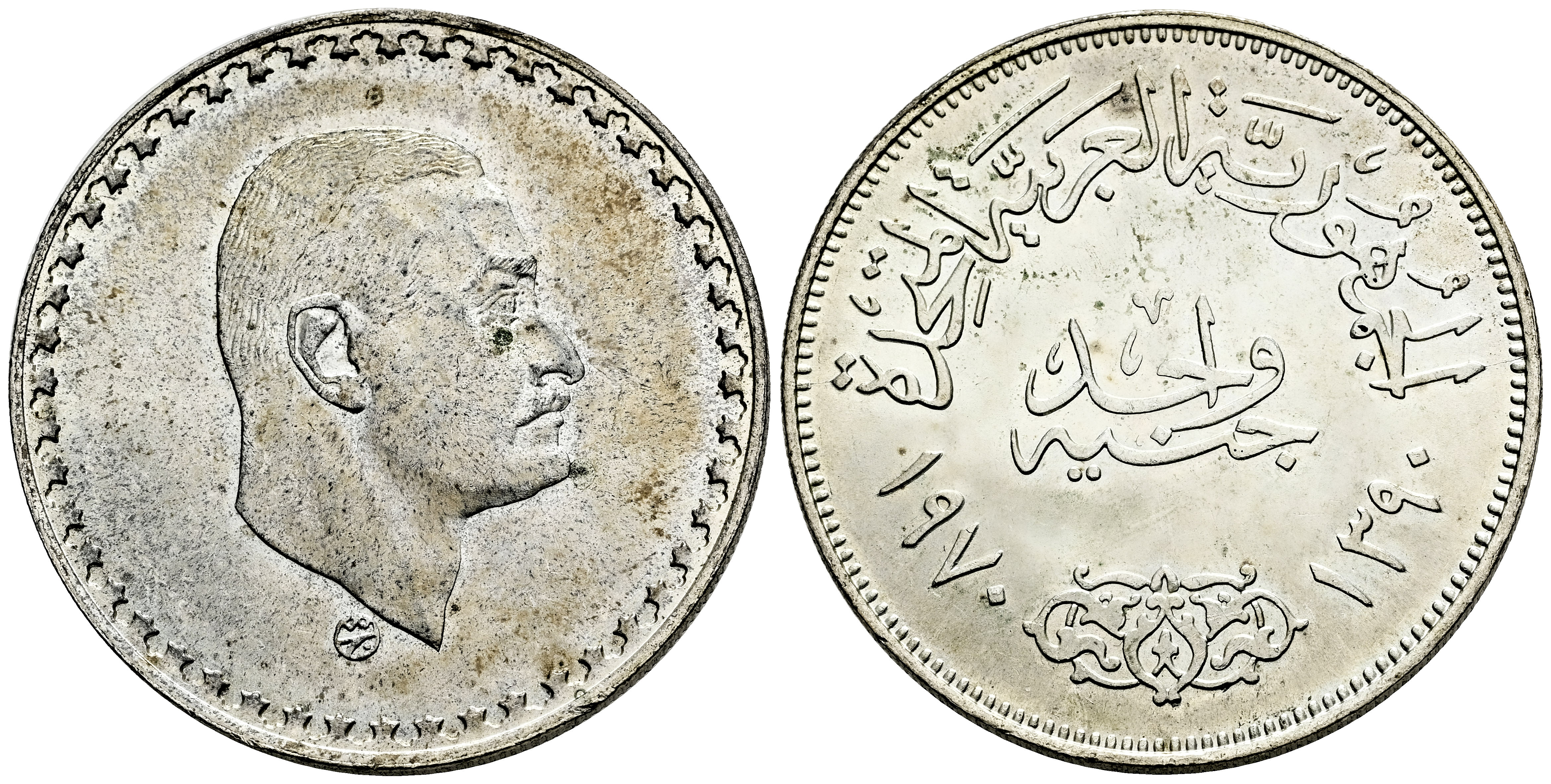 Egipto. 1 pound. 1390 H (1970). (Km-425). Ag. 25,10 g. Brillo original. EBC/EBC+. Est...45,00.