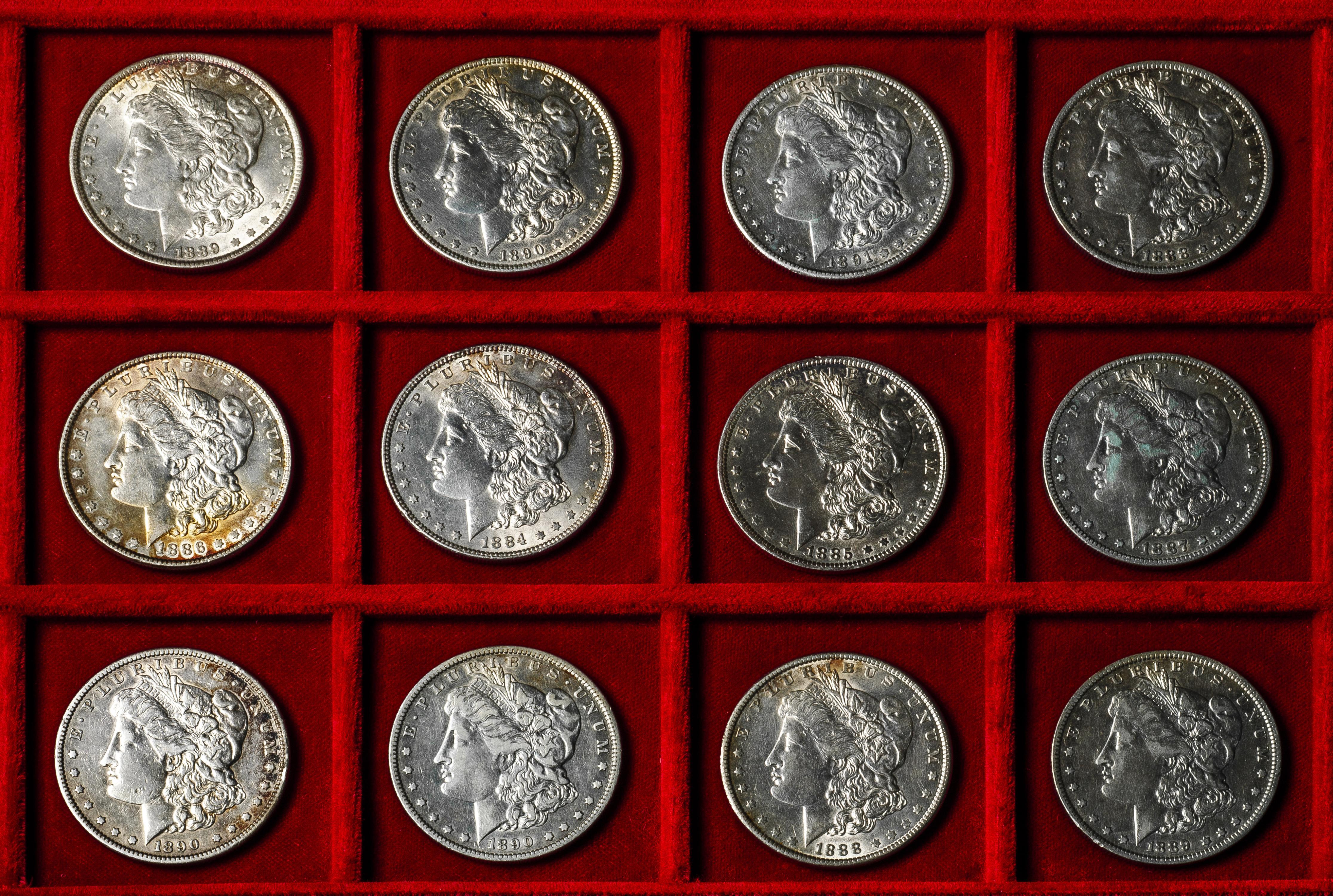 Estados Unidos. Lote de 12 monedas de 1 dollar Morgan. Ag. 320,41 g. 0,900 milésimas. Es imprescindible un riguroso examen. SOLO ENVÍO A ESPAÑA PENÍNSULA. NO SE ADMITE DEVOLUCIÓN. MBC/EBC-. Est...500,00.