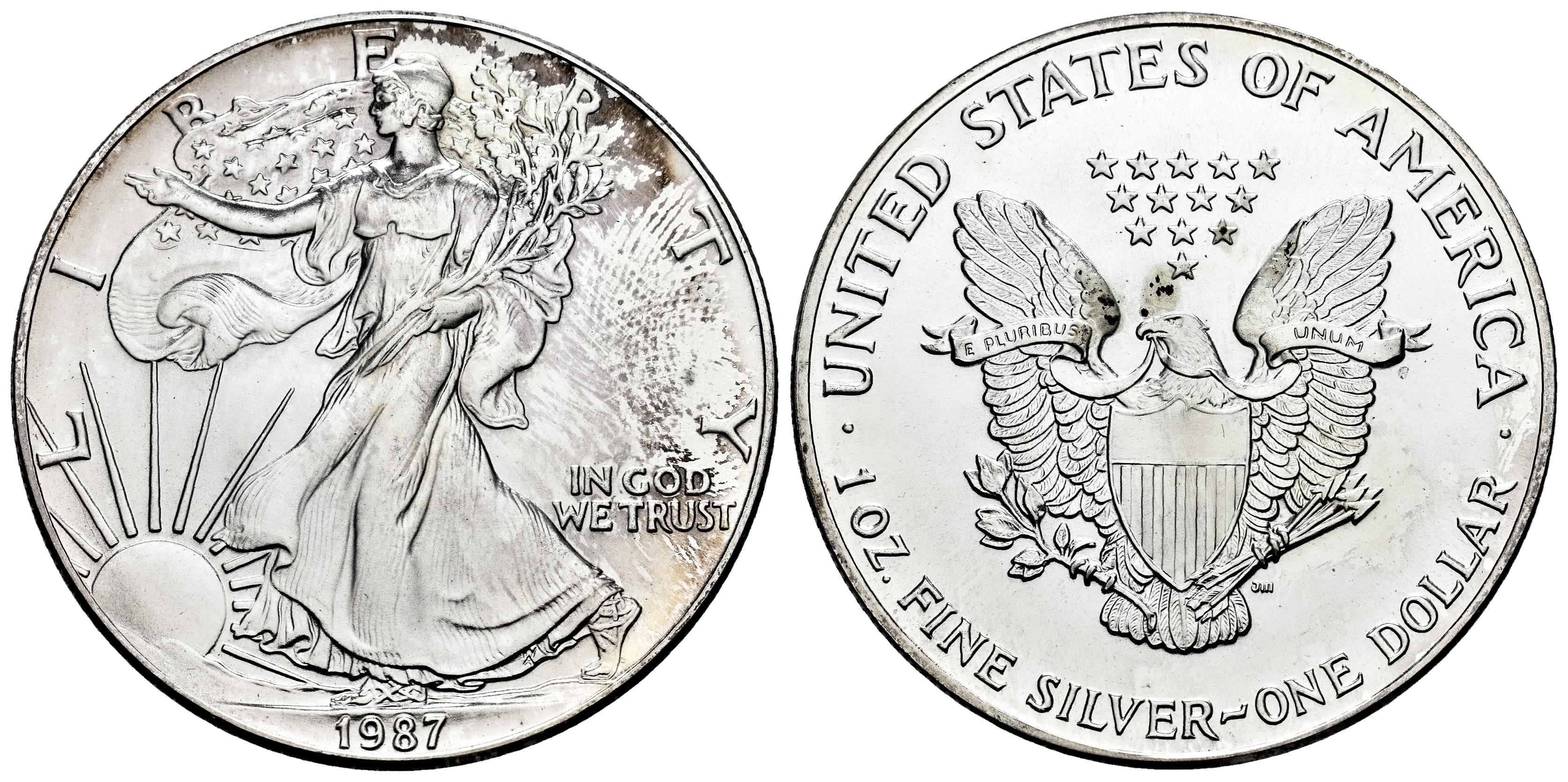 Estados Unidos. 1 dollar. 1987. (Km-273). Ag (0.999). 31,48 g. "American Silver Eagle" (Bullion Coin). SC. Est...45,00.