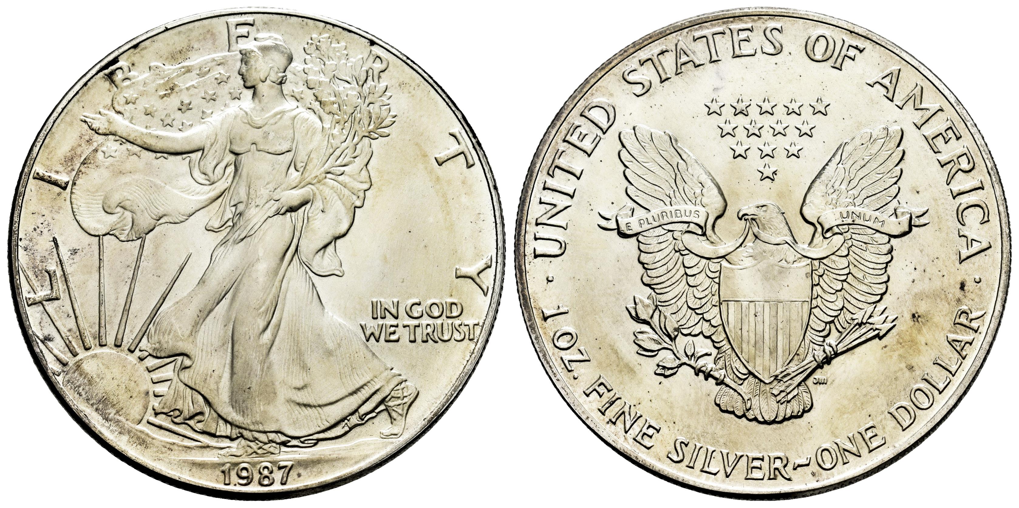 Estados Unidos. 1 dollar. 1987. (Km-273). Ag (0.999). 31,37 g. "American Silver Eagle" (Bullion Coin). SC. Est...45,00.