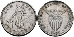 Filipinas. 1 peso. 1904. San Francisco. S. (Km-168). Ag. 27,00 g.  Administración Americana. Ligeramente limpiada. MBC. Est...50,00.
