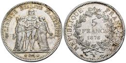 Francia. III República. 5 francs. 1876. París. A. (Km-820.1). (Gad-745a). Ag. 24,97 g. Rayitas. Brillo original. EBC+. Est...50,00.