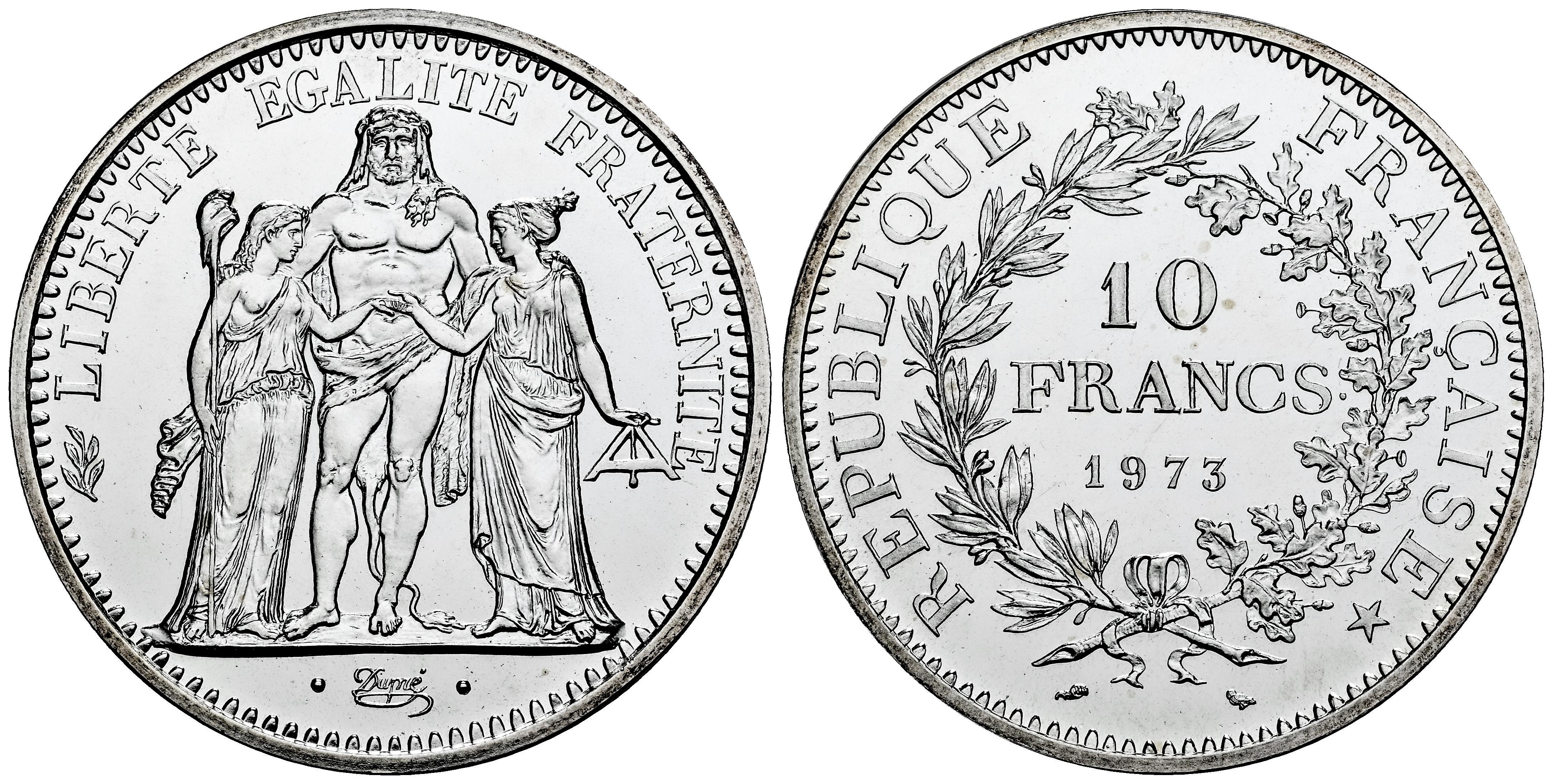 Francia. 10 francs. 1973. París. (Km-932). (Gad-813). Ag. 25,02 g. Pleno brillo original. SC. Est...50,00.